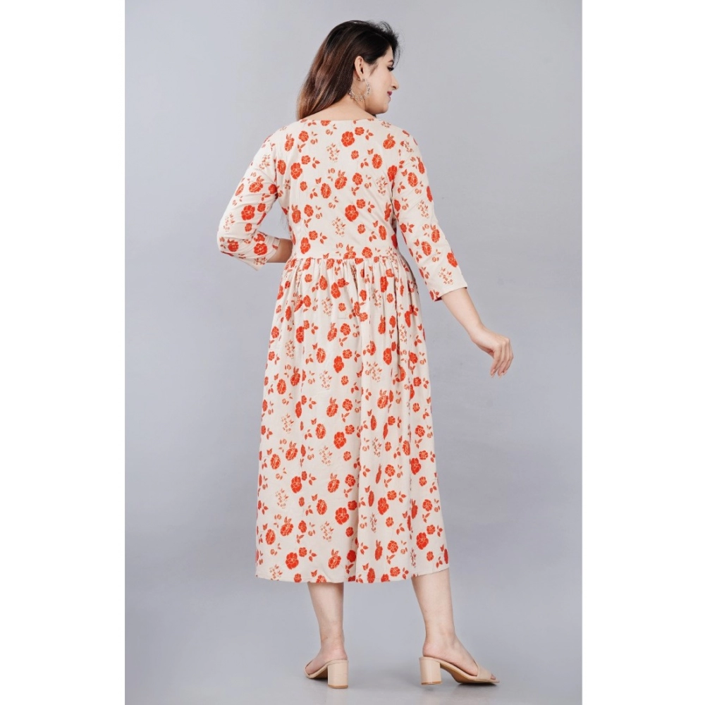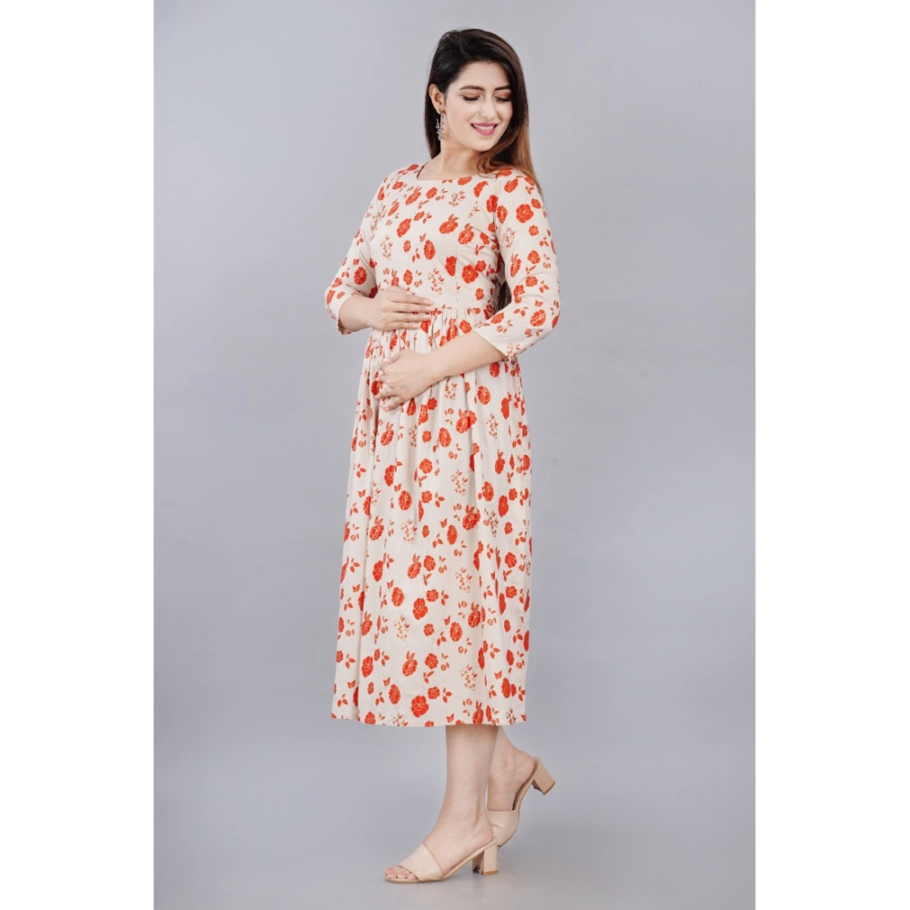 Generic Women’s Casual 3/4 Sleeve Printed Viscose Maternity Feeding Kurti (Beige)