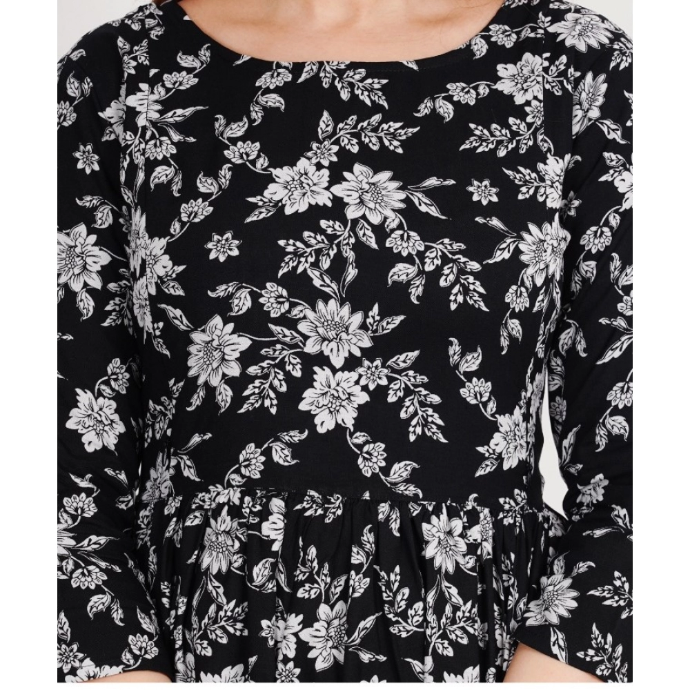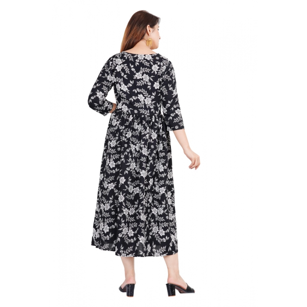 Generic Women’s Casual 3/4 Sleeve Printed Viscose Maternity Feeding Kurti (Black)