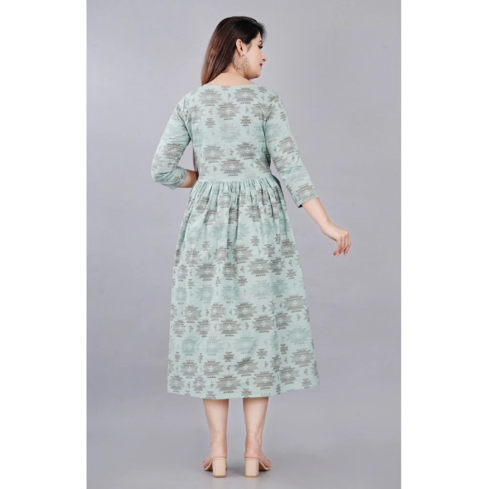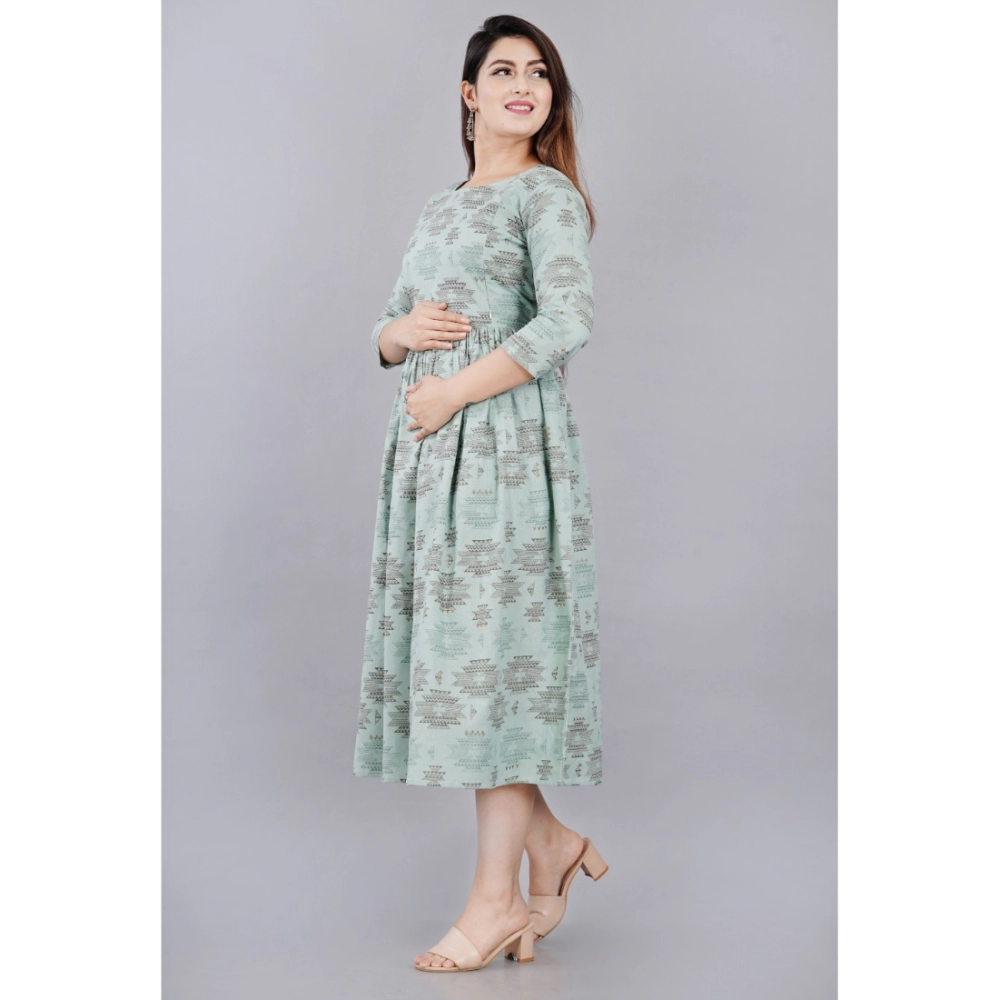 Generic Women’s Casual 3/4 Sleeve Printed Viscose Maternity Feeding Kurti (Light Green)