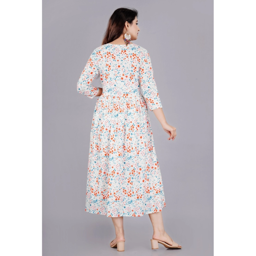 Generic Women’s Casual 3/4 Sleeve Printed Viscose Maternity Feeding Kurti (White)