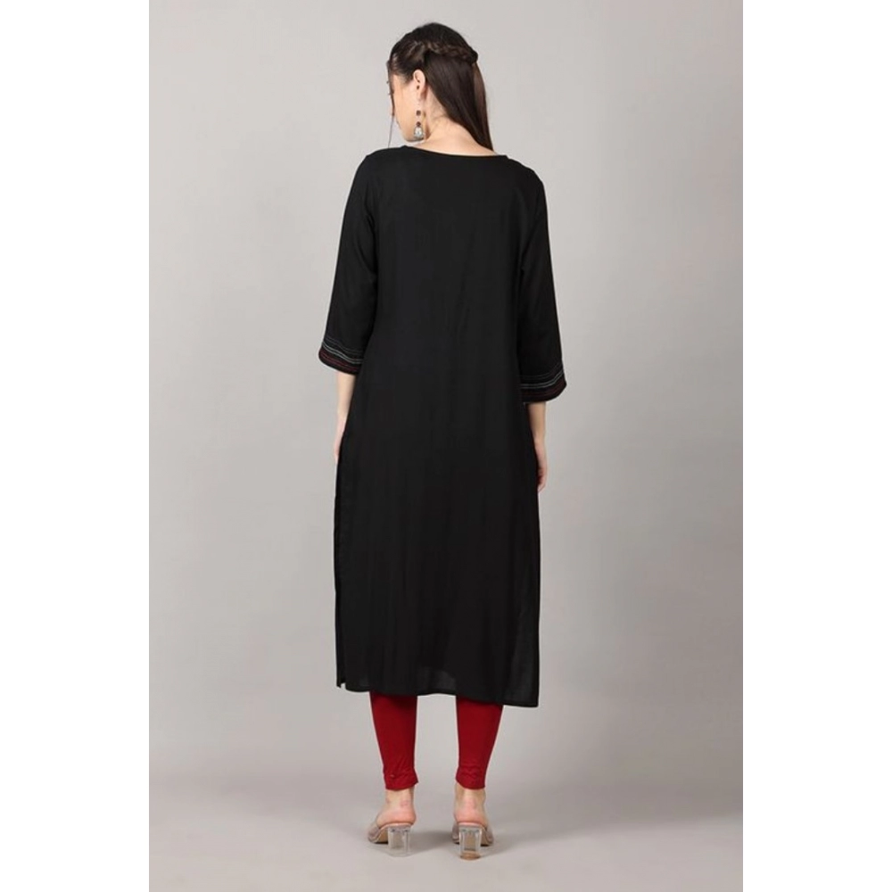 Generic Women’s Casual 3/4 Sleeve Viscose Rayon Printed Kurti (Black)