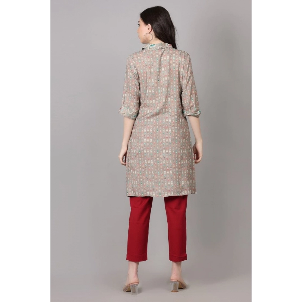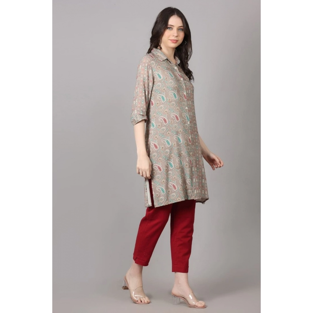 Generic Women’s Casual 3/4 Sleeve Viscose Rayon Printed Kurti (Grey)
