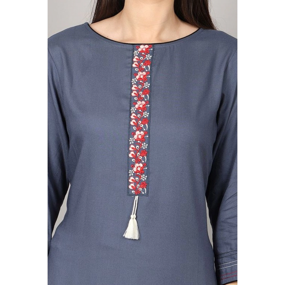 Generic Women’s Casual 3/4 Sleeve Viscose Rayon Printed Kurti (Grey)