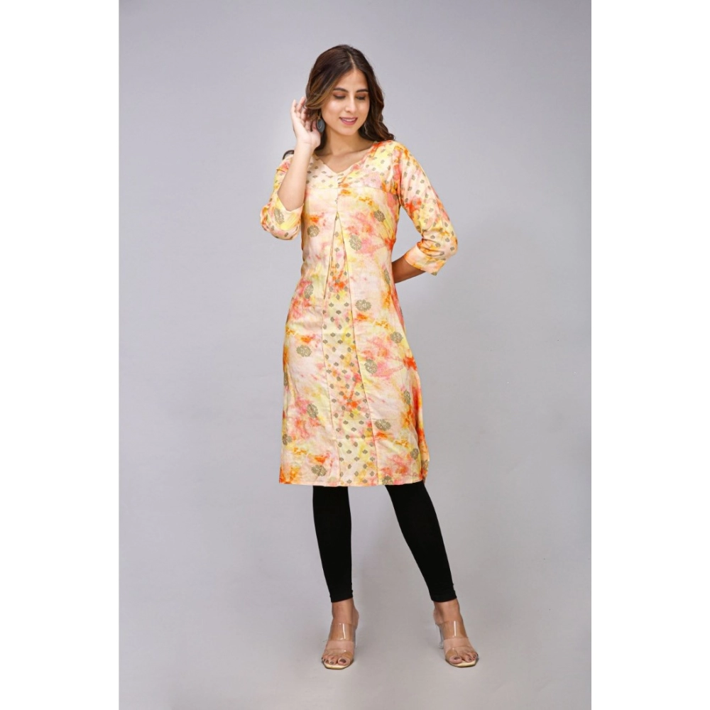 Generic Women’s Casual 3/4 Sleeve Viscose Rayon Printed Kurti (Orange)