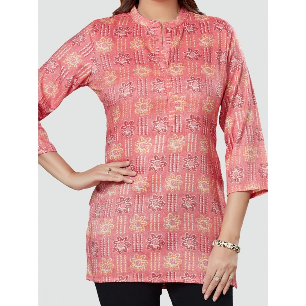 Generic Women’s Casual 3/4 Sleeves Printed Rayon Short Top (Pink)