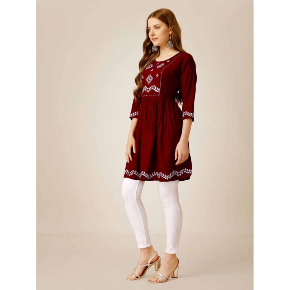 Generic Women’s Casual 3-4 th Sleeve Embroidered Rayon Tunic Top (Maroon)