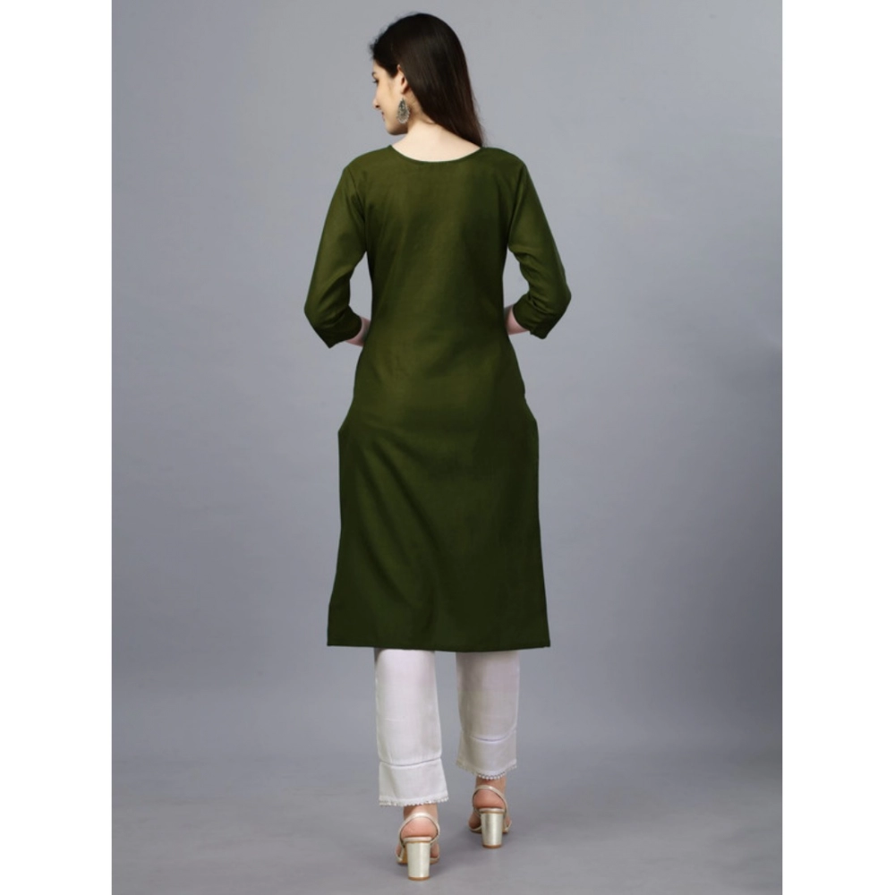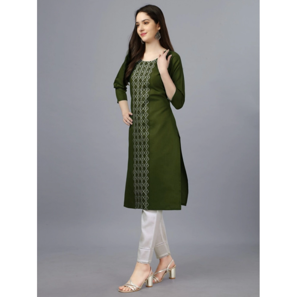 Generic Women’s Casual 3-4 th Sleeve Embroidery Cotton Kurti (Dark Green)