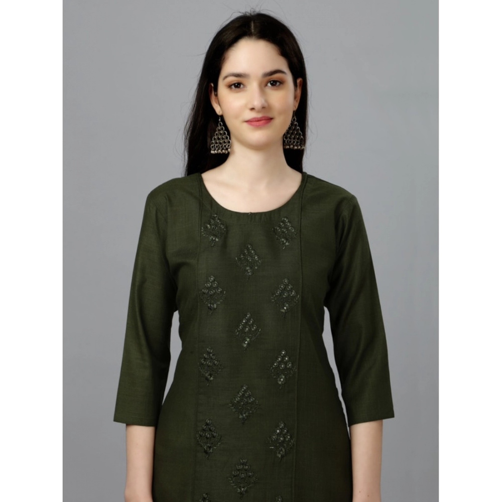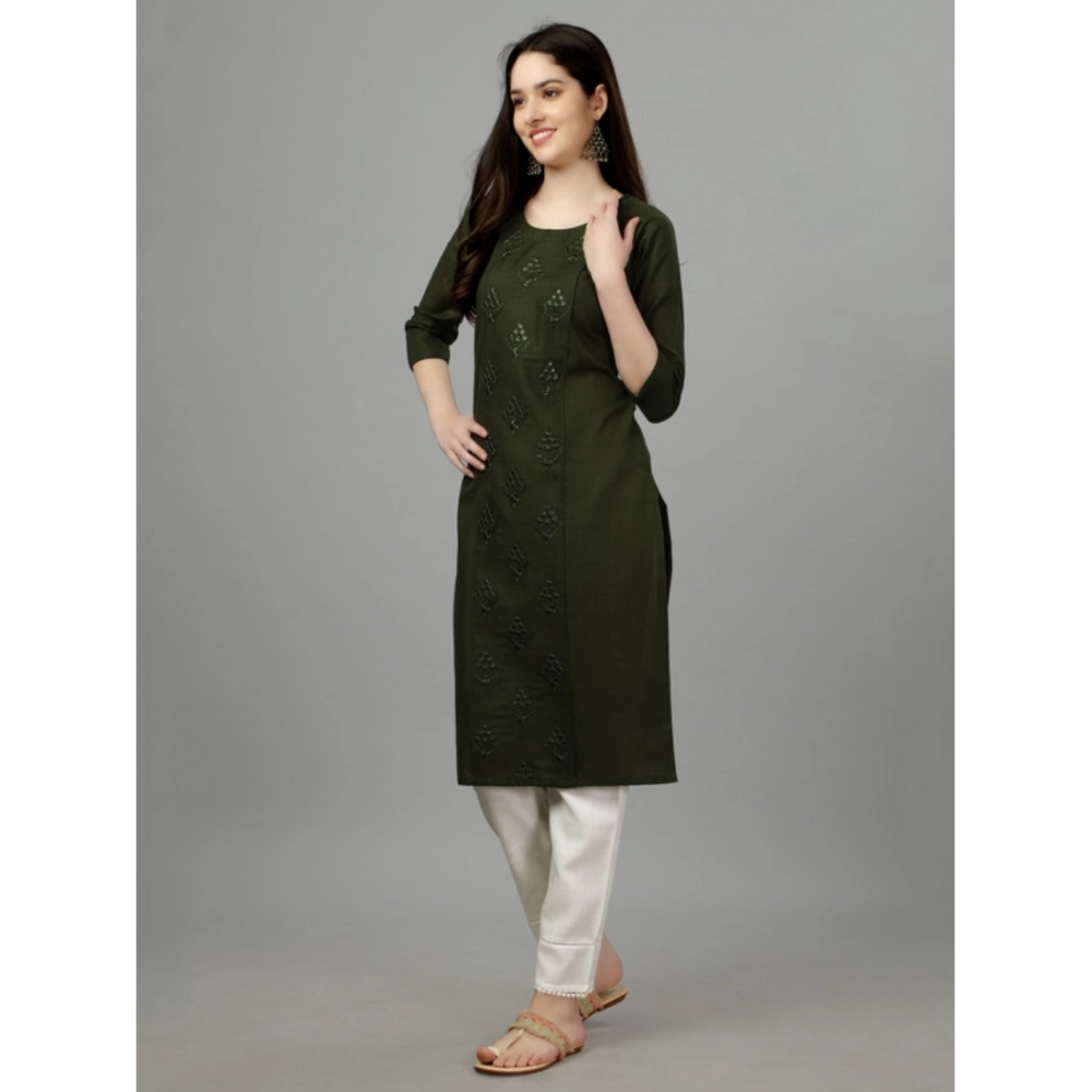 Generic Women’s Casual 3-4 th Sleeve Embroidery Cotton Kurti (Dark Green)