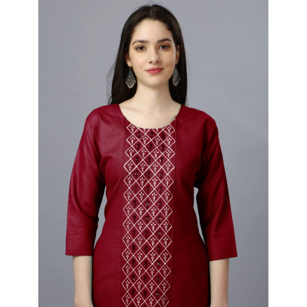 Generic Women’s Casual 3-4 th Sleeve Embroidery Cotton Kurti (Maroon)