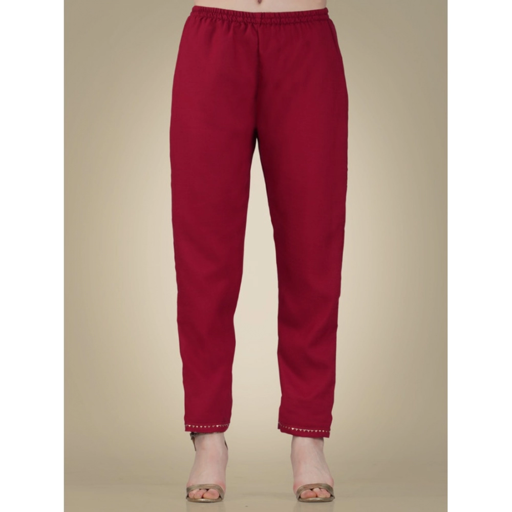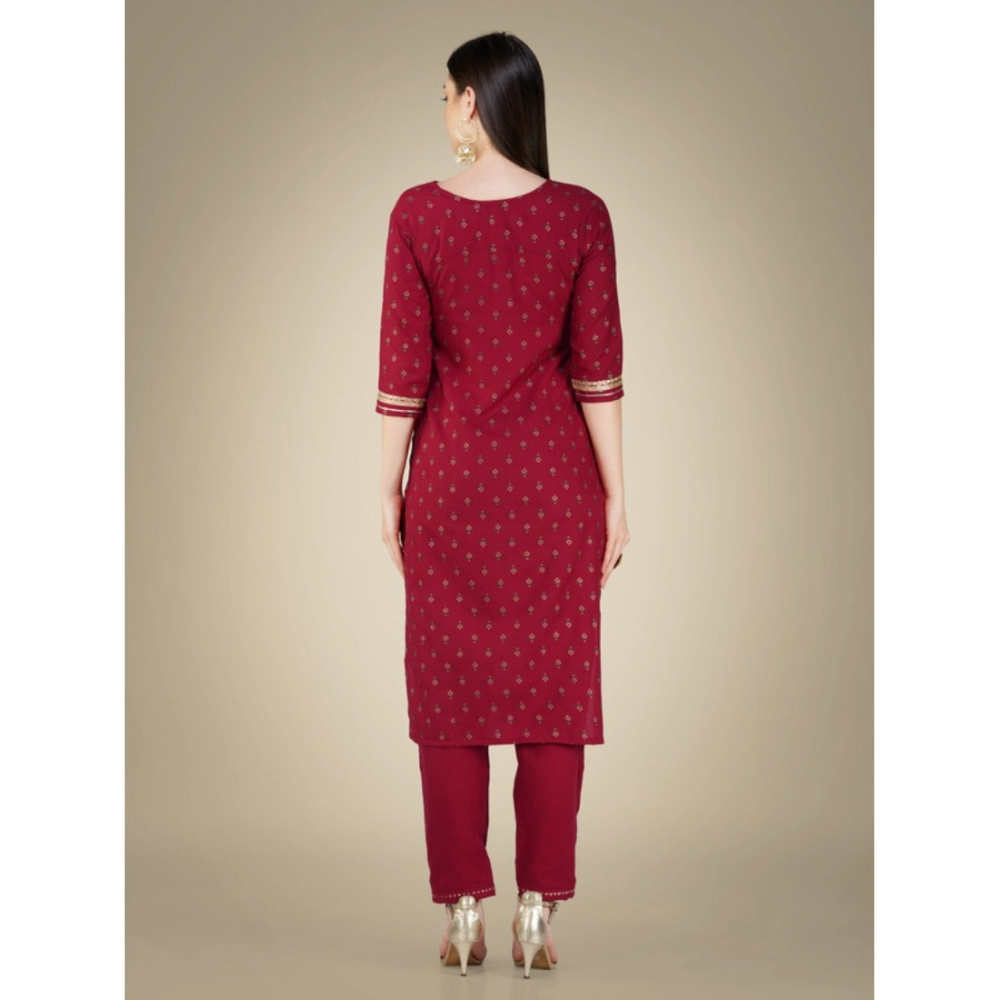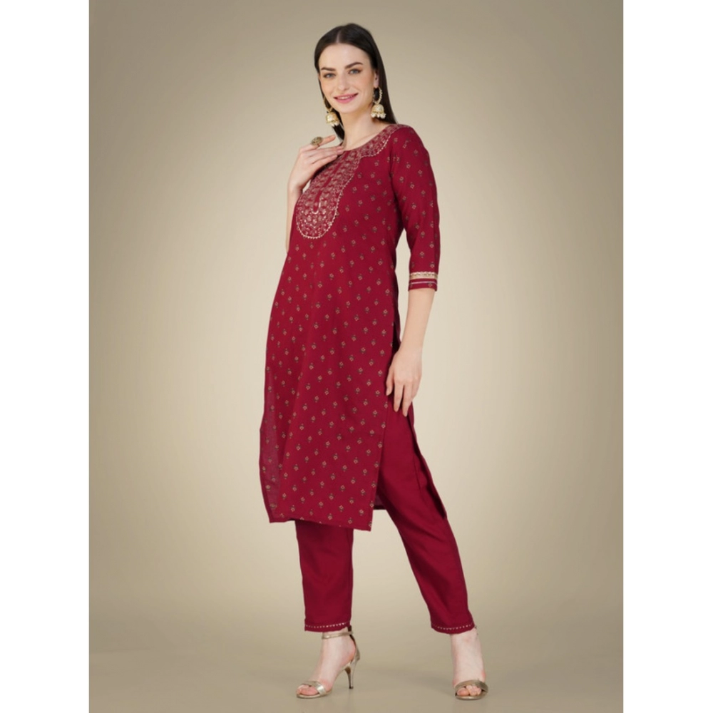 Generic Women’s Casual 3-4 th Sleeve Embroidery Cotton Kurti Pant Dupatta Set (Maroon)