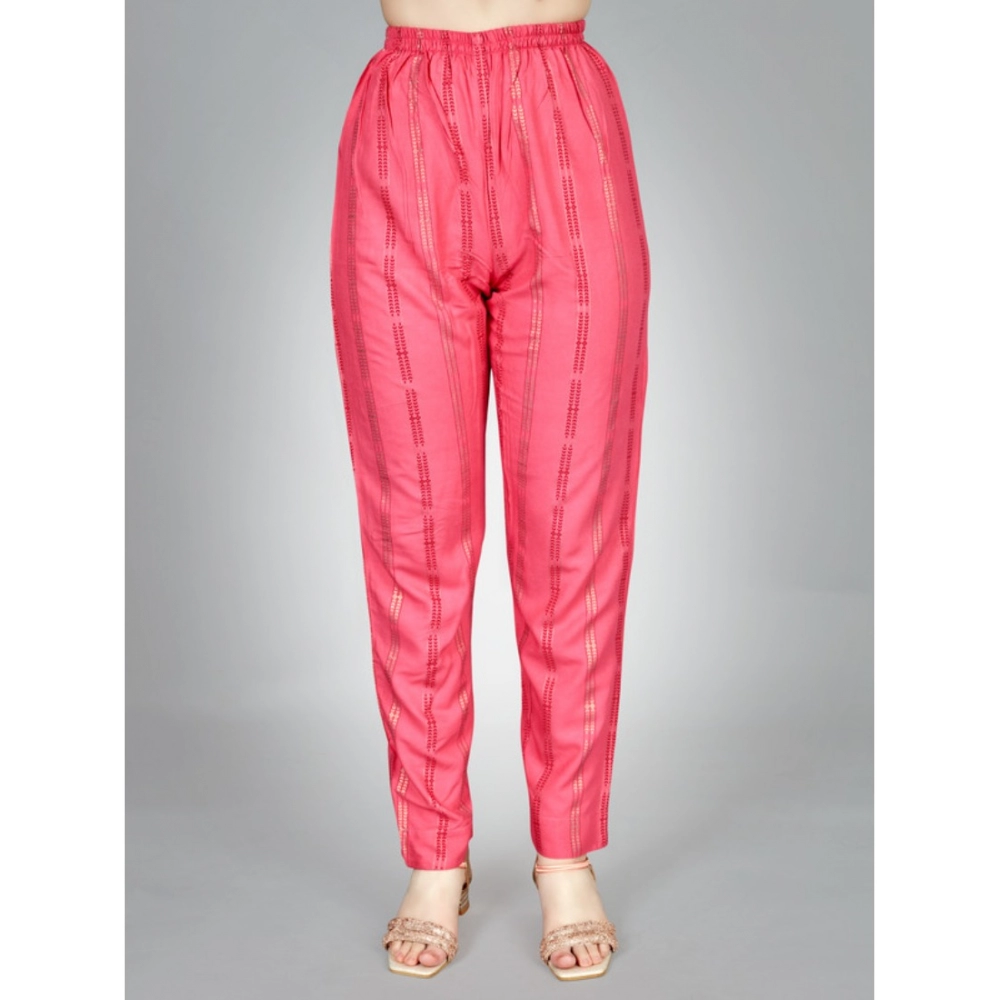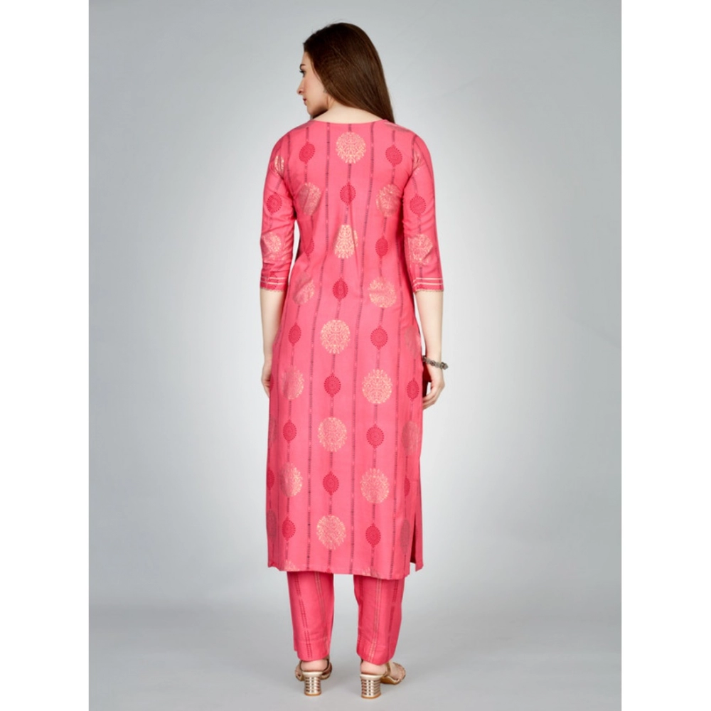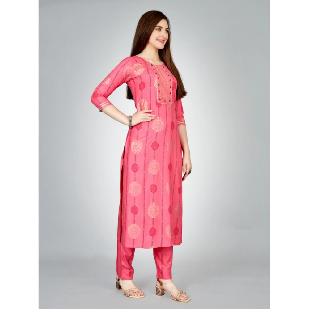 Generic Women’s Casual 3-4 th Sleeve Embroidery Rayon Kurti Pant Set (Pink)