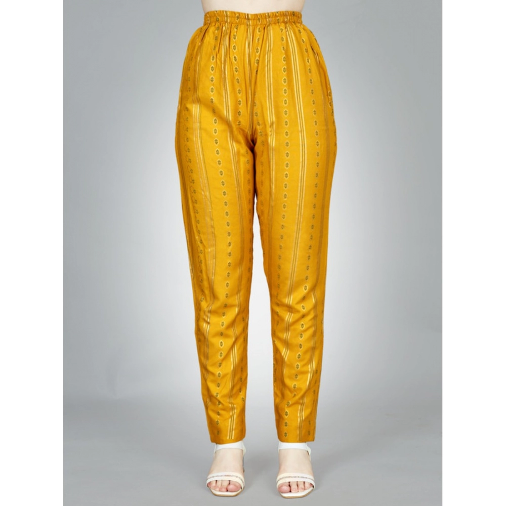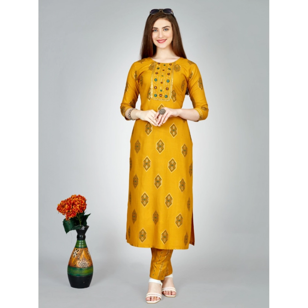 Generic Women’s Casual 3-4 th Sleeve Embroidery Rayon Kurti Pant Set (Yellow)