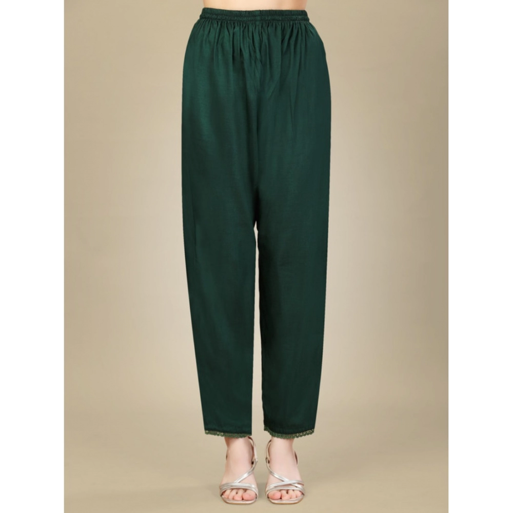Generic Women’s Casual 3-4 th Sleeve Embroidery Silk Blend Kurti Pant Dupatta Set (Dark Green)