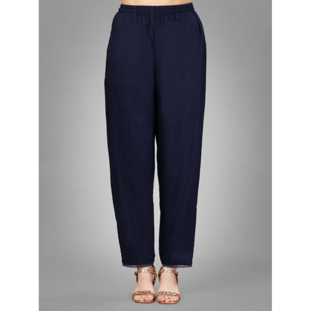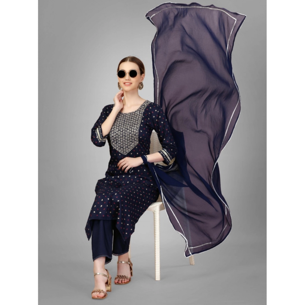 Generic Women’s Casual 3-4 th Sleeve Embroidery Silk Blend Kurti Pant Dupatta Set (Navy Blue)