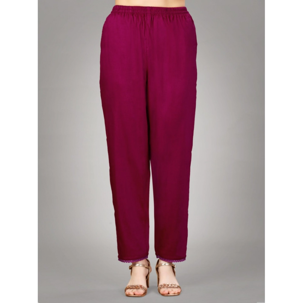 Generic Women’s Casual 3-4 th Sleeve Embroidery Silk Blend Kurti Pant Dupatta Set (Rani)
