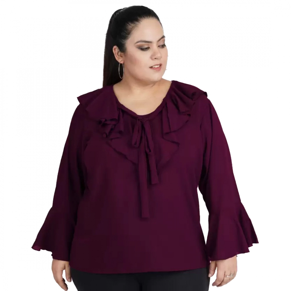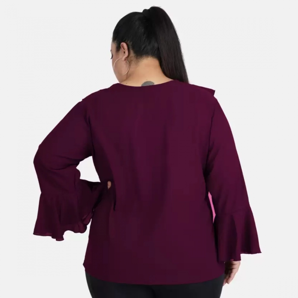 Generic Women’s Casual Bell Sleeve Solid Purple Top (Color:Purple, Material:Georgette)