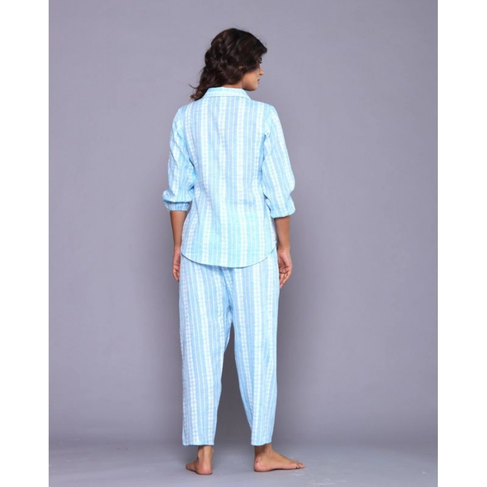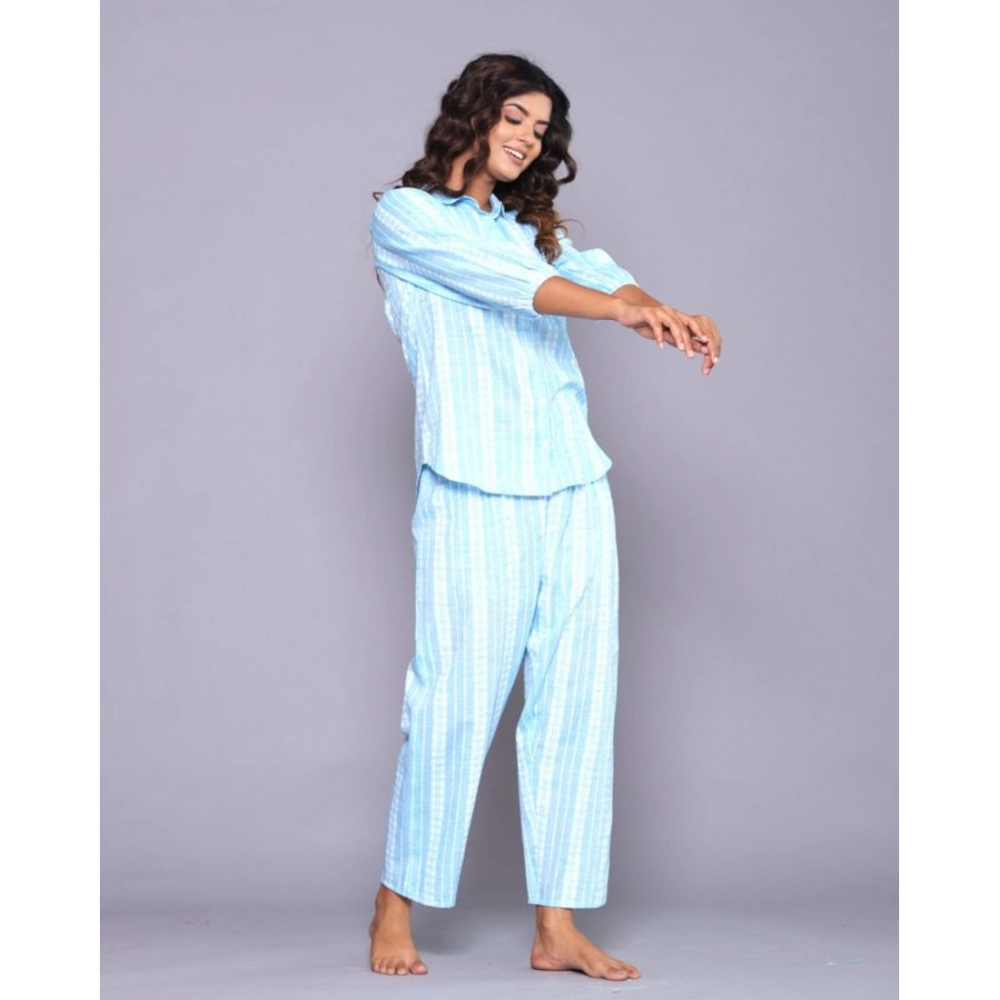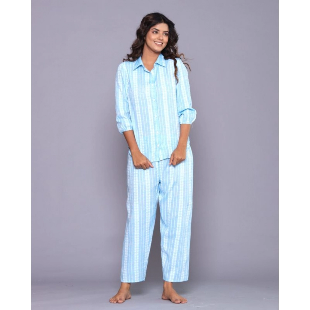 Generic Women’s Casual Cotton 3-4th Sleeve Full Night Suit Set (Aqua)