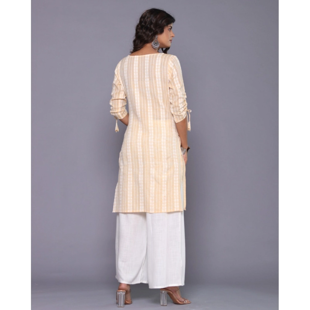 Generic Women’s Casual Cotton Blend 3-4th Sleeve Straight Kurti (Yellow)