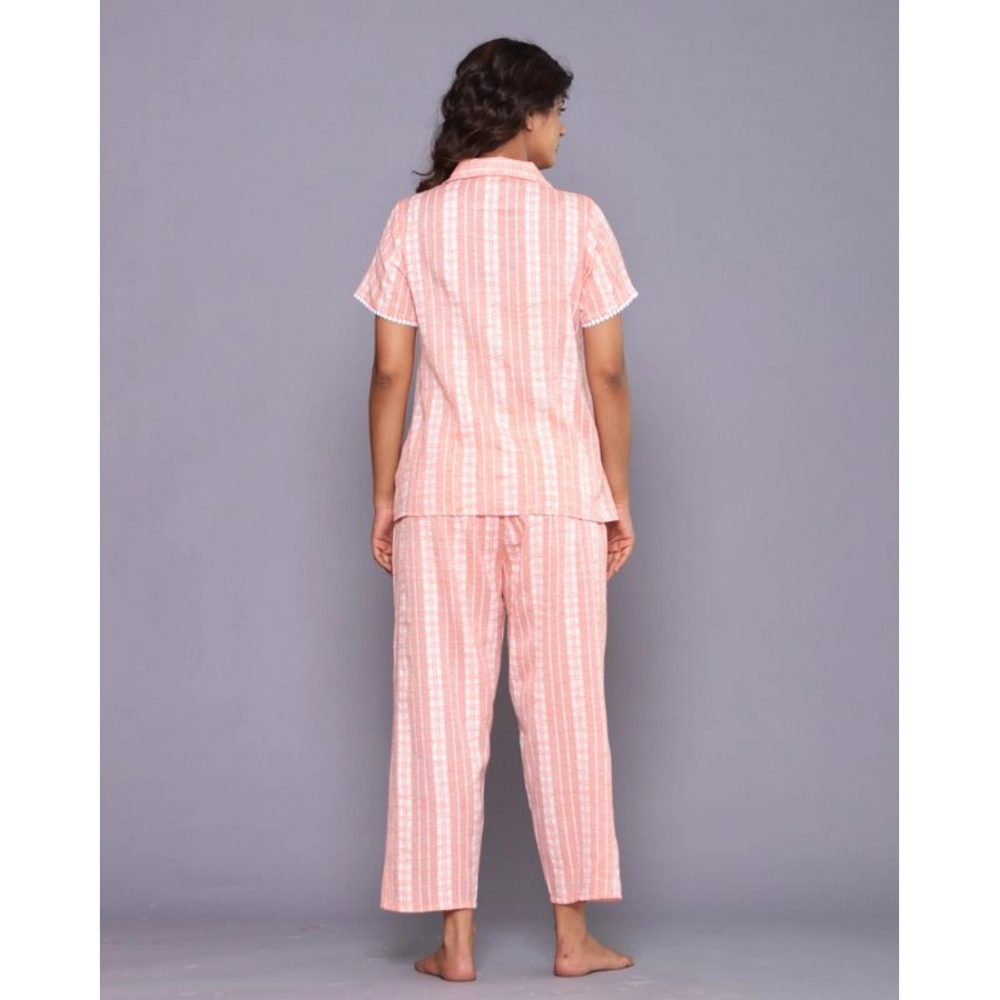 Generic Women’s Casual Cotton Short Sleeve Full Night Suit Set (Orange)