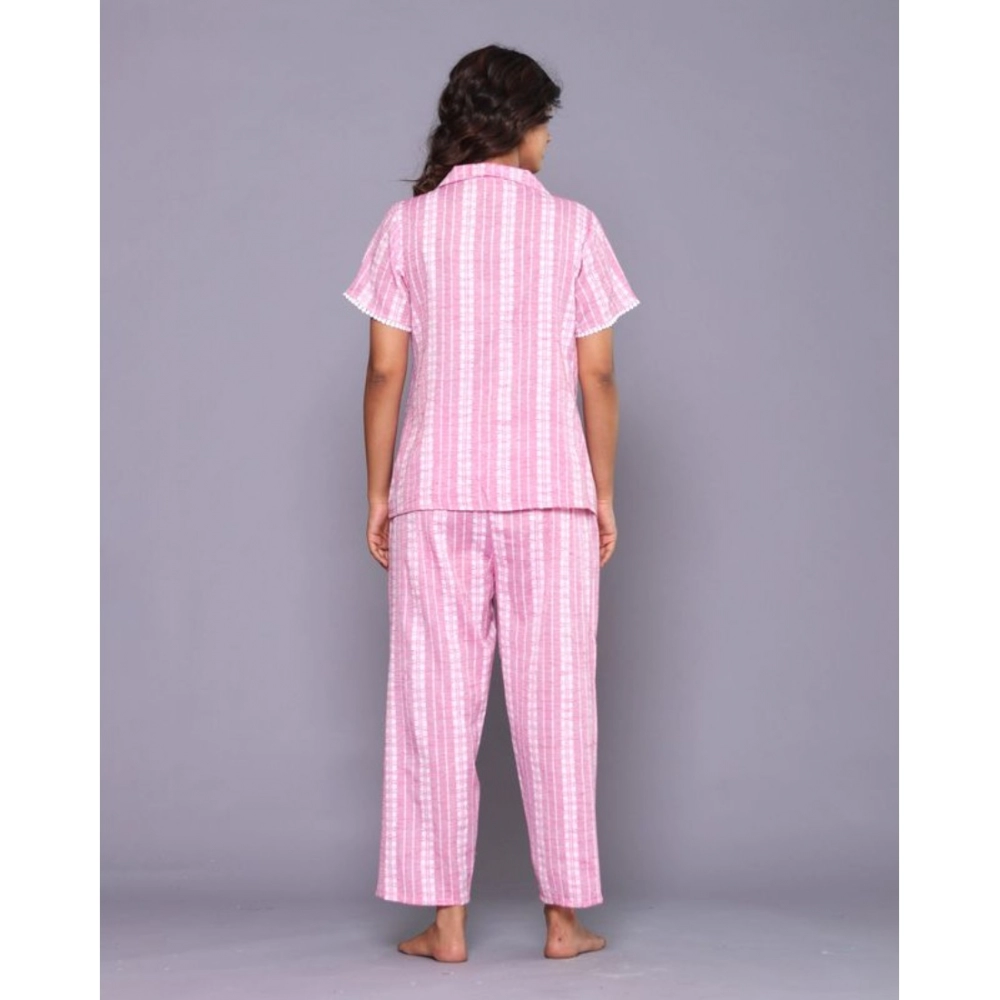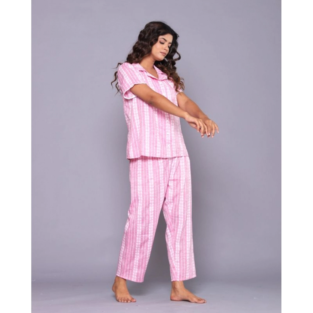 Generic Women’s Casual Cotton Short Sleeve Full Night Suit Set (Pink)