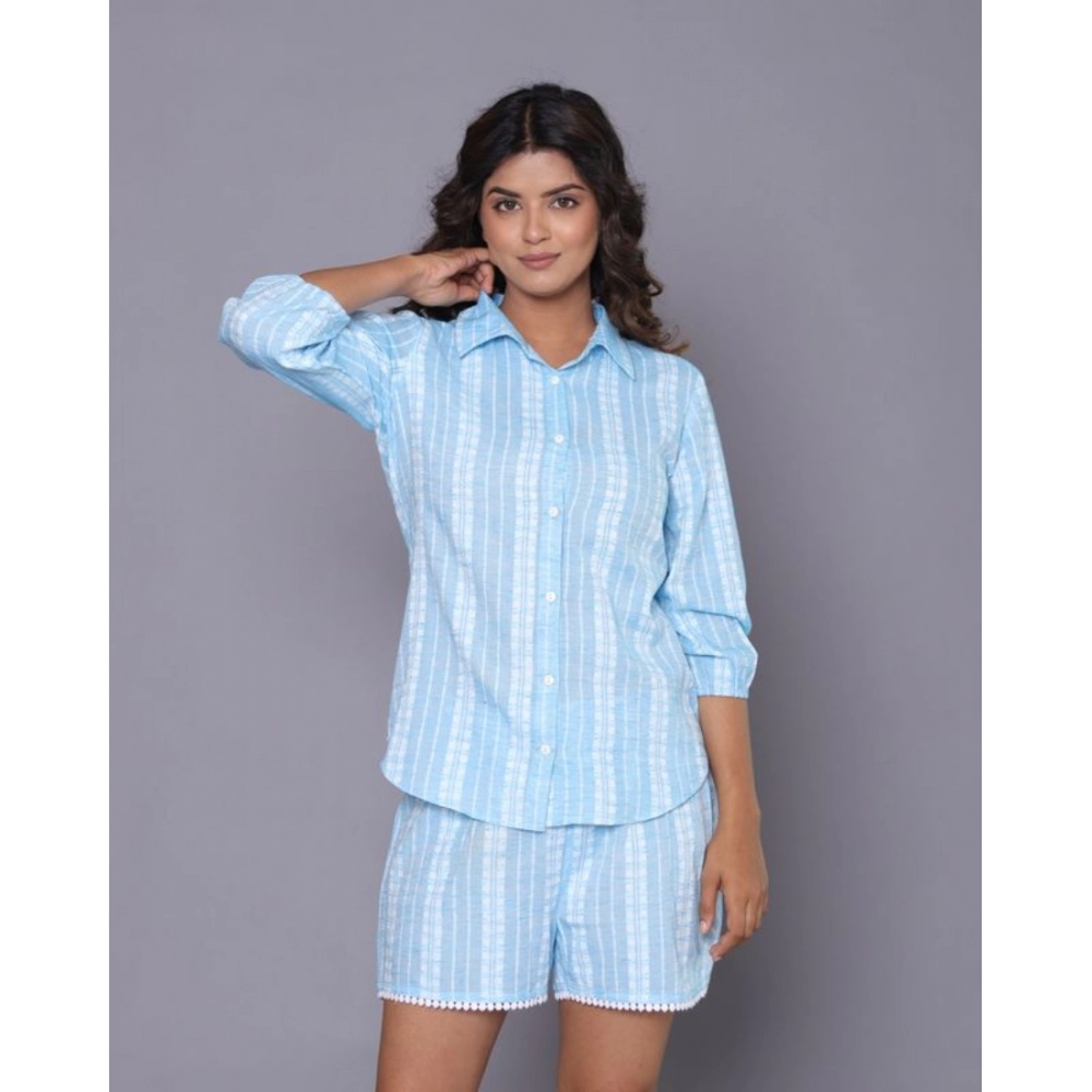 Generic Women’s Casual Cotton Short Sleeve Short Night Suit Set (Aqua)