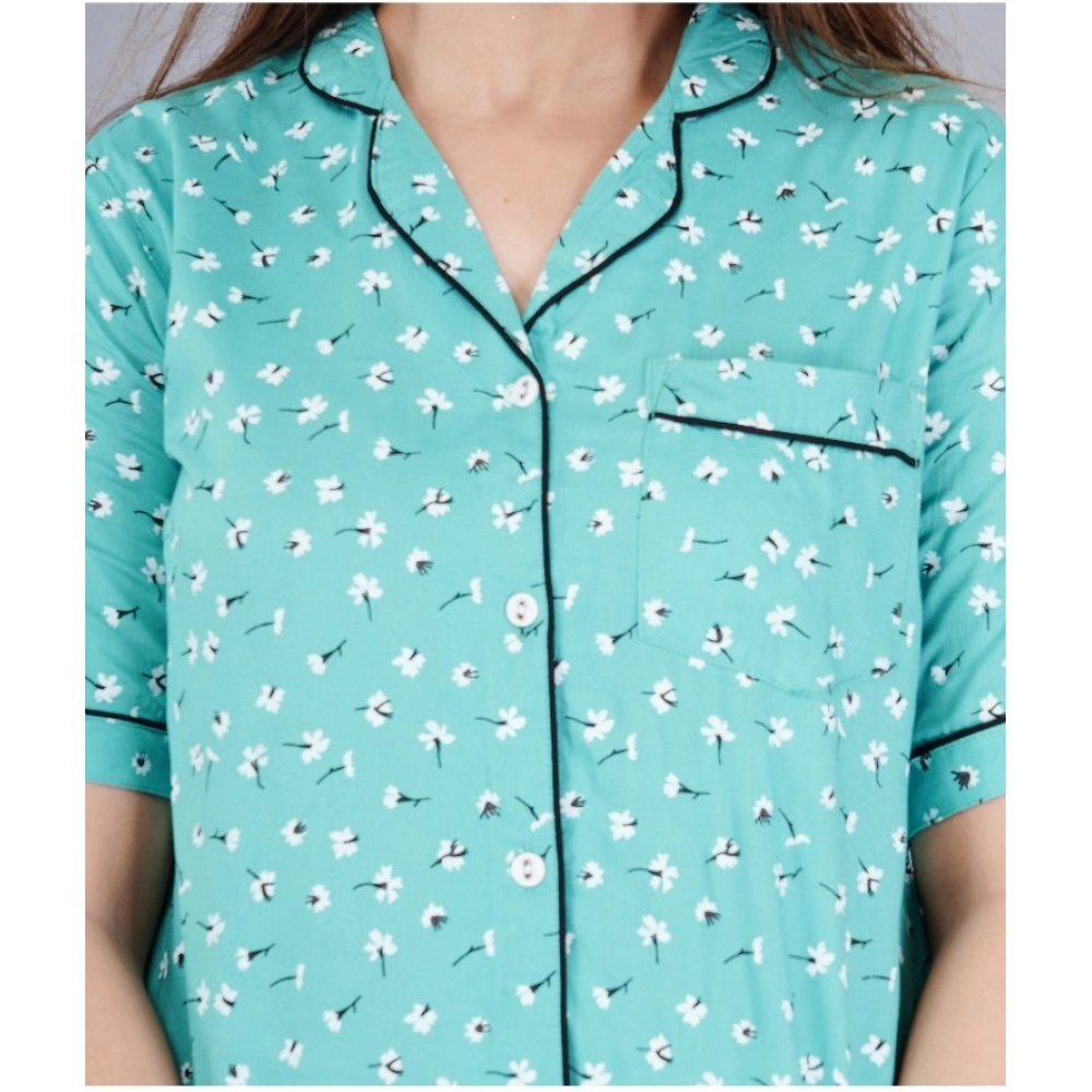 Generic Women’s Casual Half Sleeve Printed Viscose Rayon Shirt With Pyjama Pant Night Suit Set (Green)