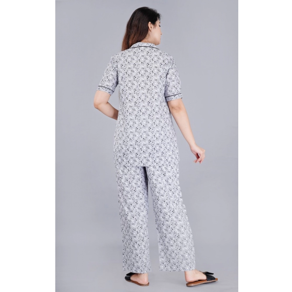 Generic Women’s Casual Half Sleeve Printed Viscose Rayon Shirt With Pyjama Pant Night Suit Set (Grey)