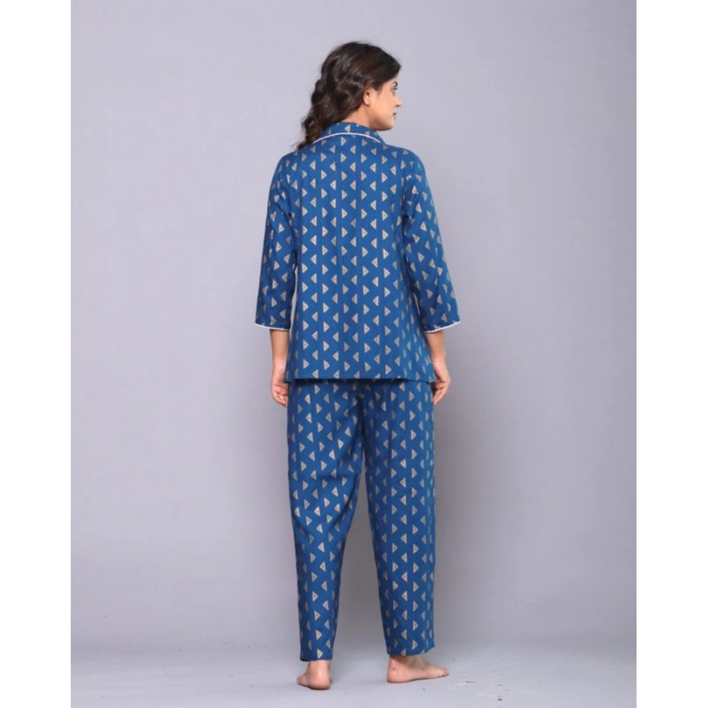 Generic Women’s Casual Rayon 3-4th Sleeve Night Suit Set (Blue)