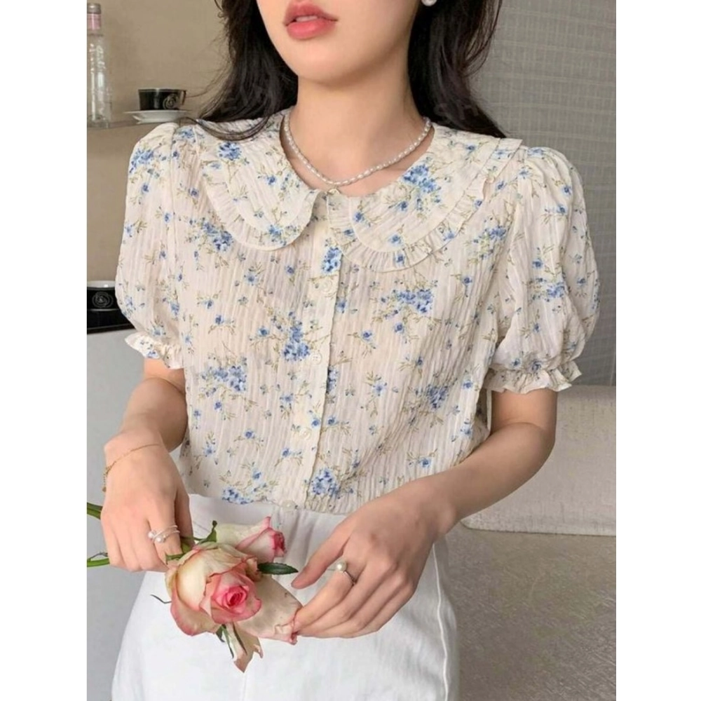 Generic Women’s Casual Rayon Cuff Sleeve Printed Collar Neck Shirt (Multicolor)