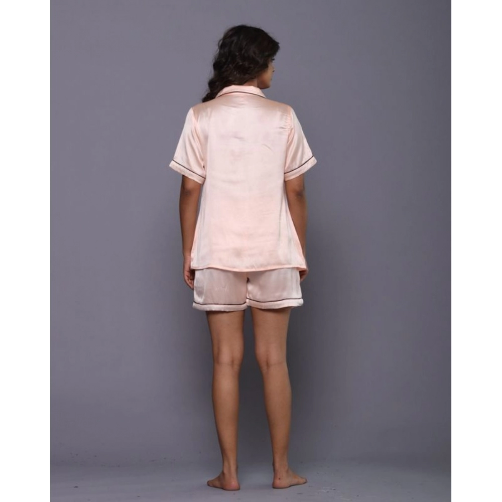 Women’s Casual Satin Solid Half Sleeve Night Suit Set
