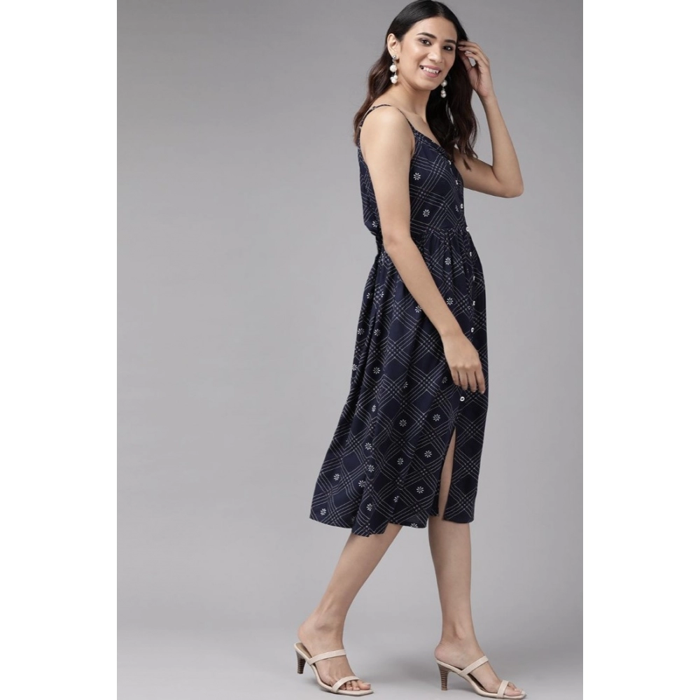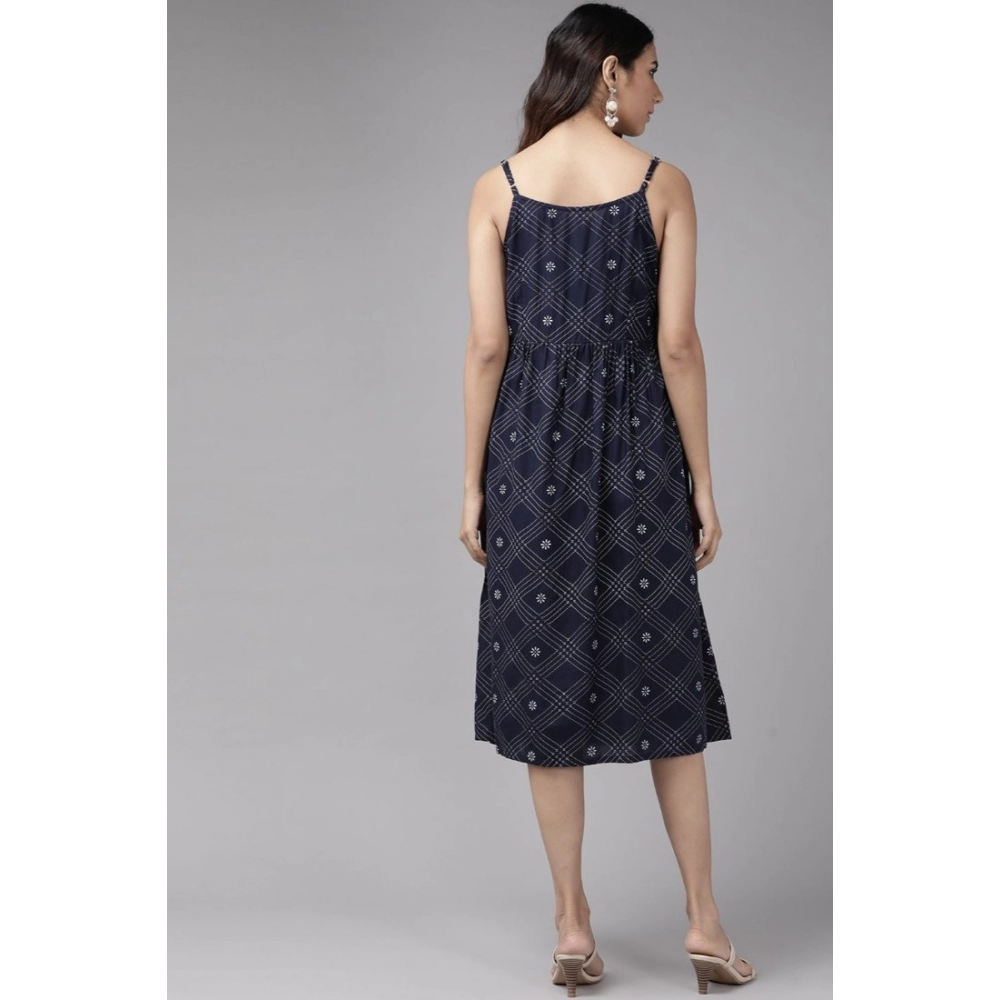 Generic Women’s Casual Sleeveless Stripe Printed Rayon Dress (Blue)