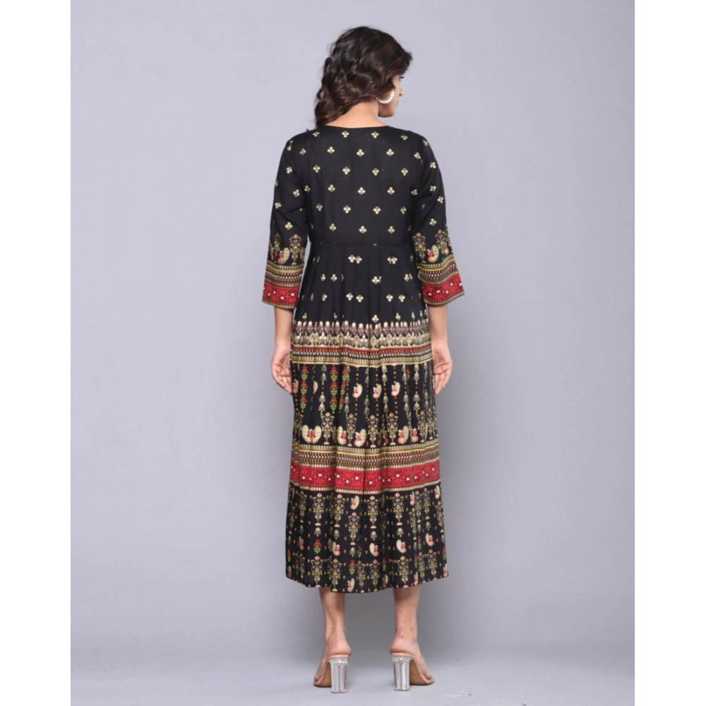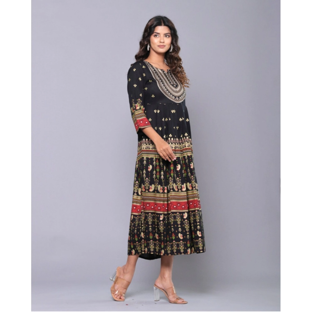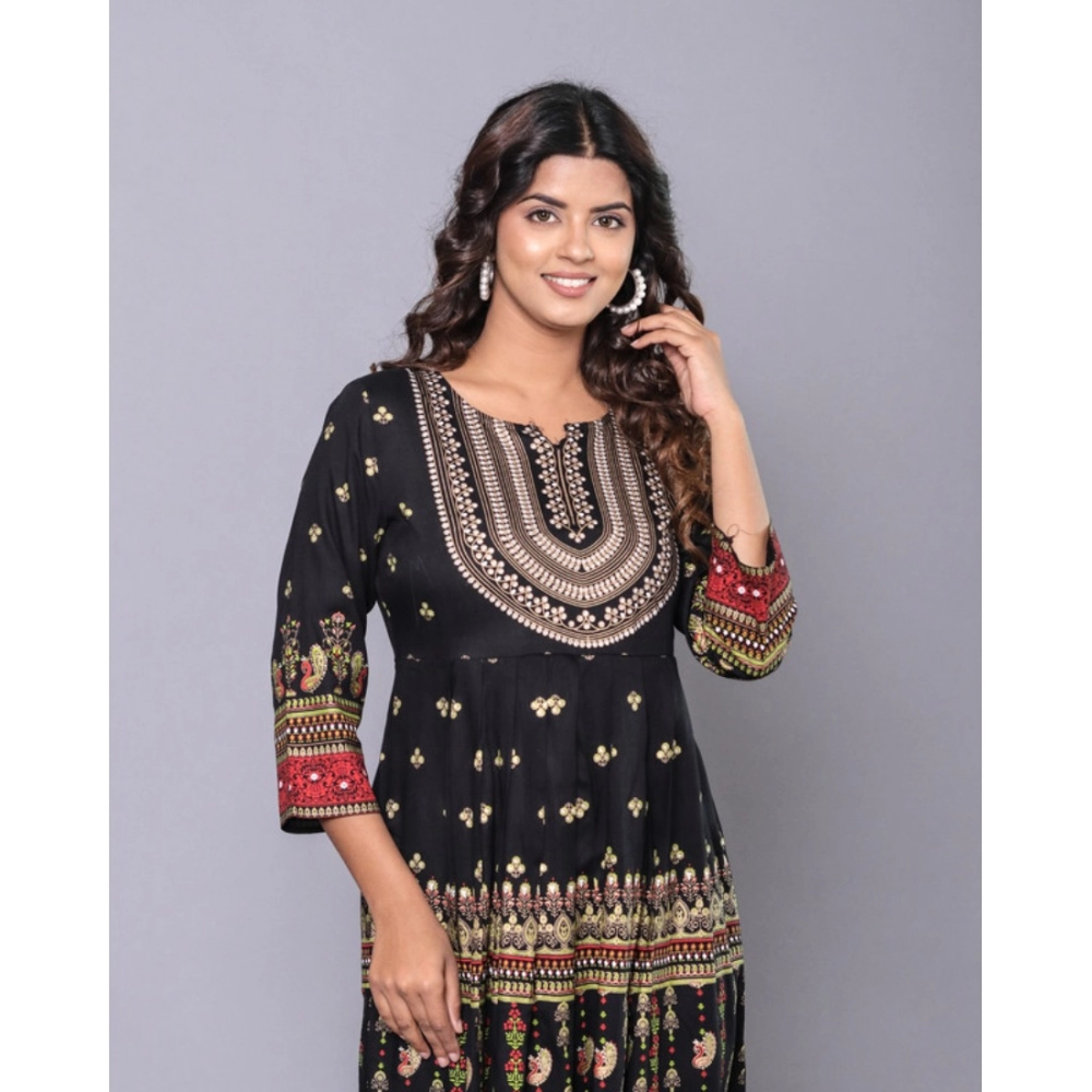 Generic Women’s Casual Viscose Rayon 3-4th Sleeve Kurti (Black)