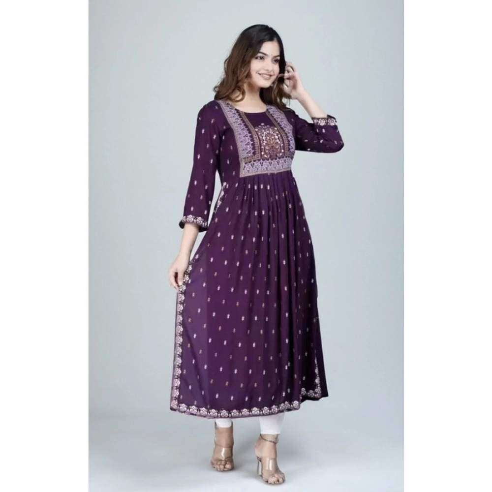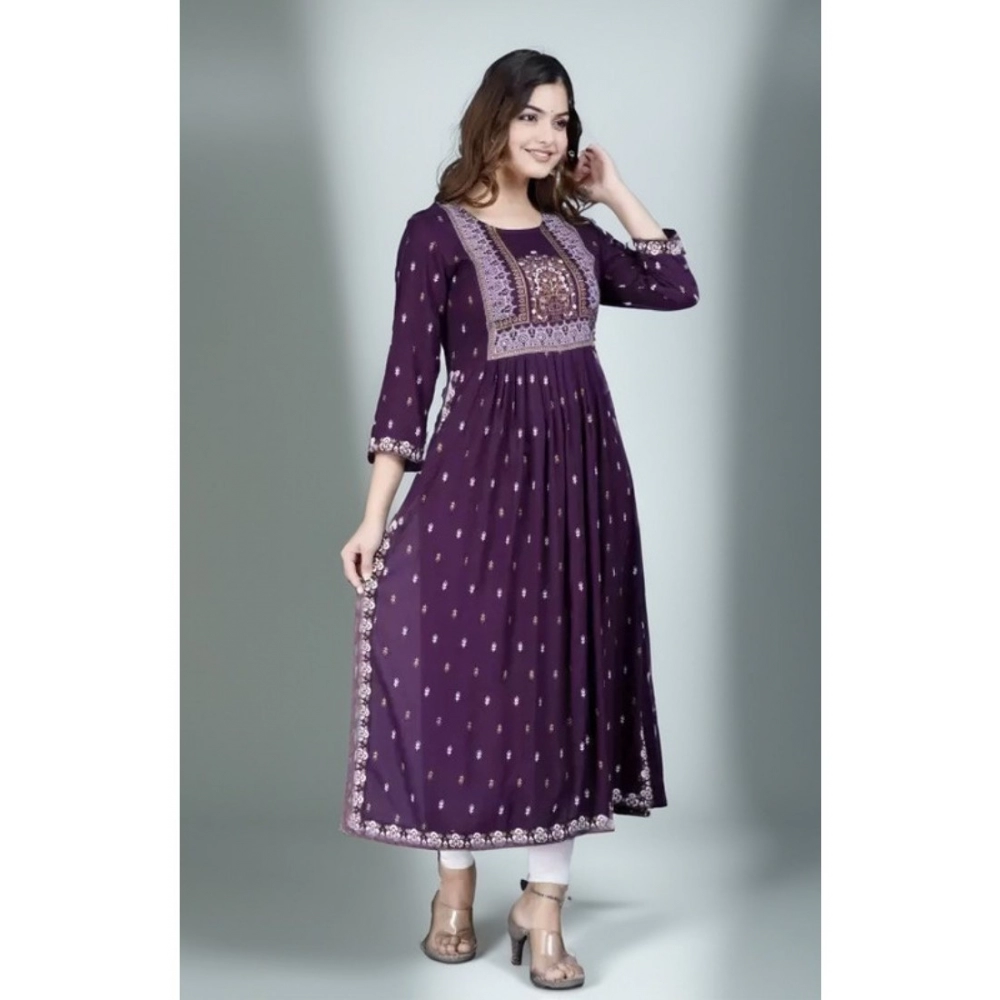 Generic Women’s Casual Viscose Rayon 3-4th Sleeve Nayra Cut Kurti (Purple)