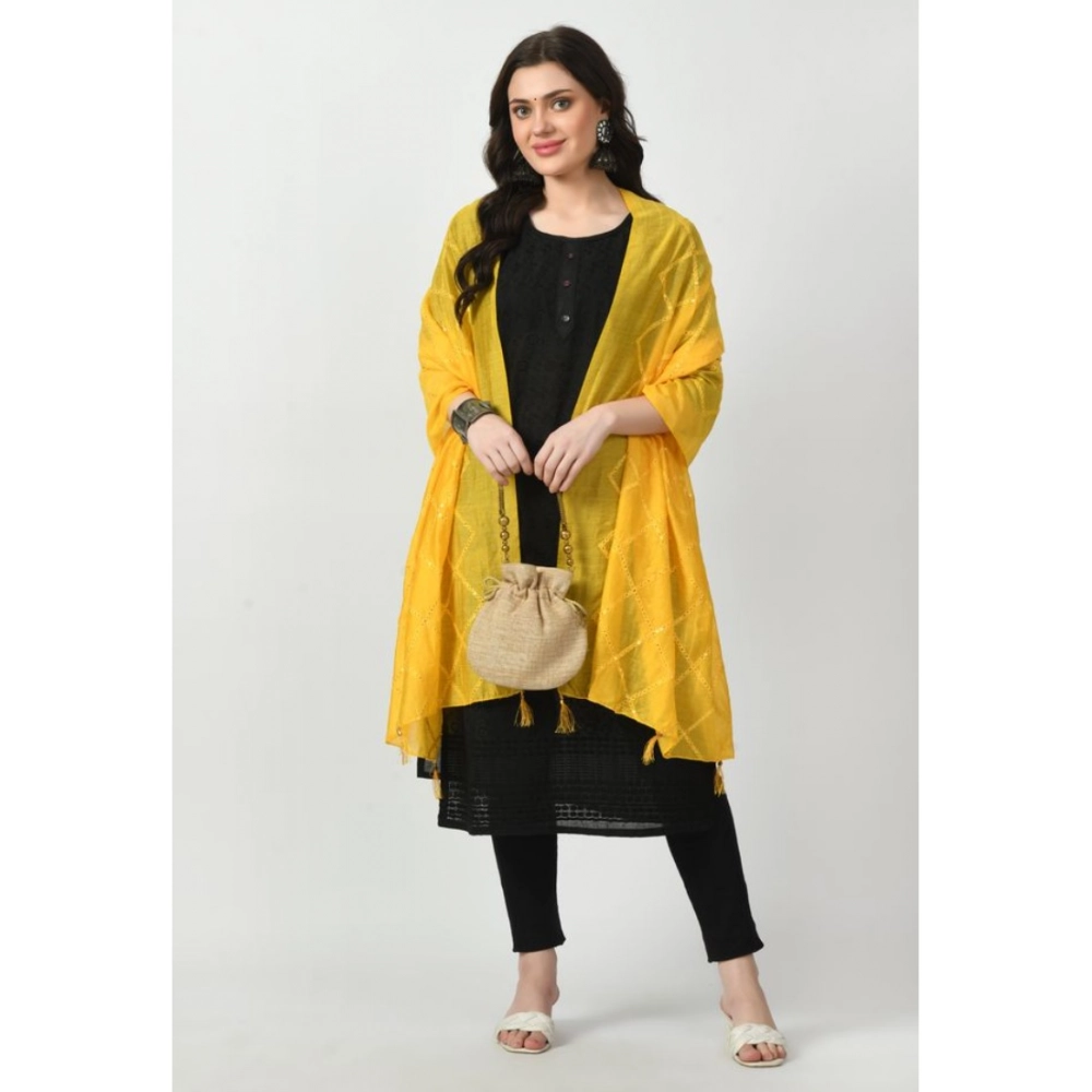 Generic Women’s Chanderi Self Design Dupatta (Yellow, Length: Free Size)