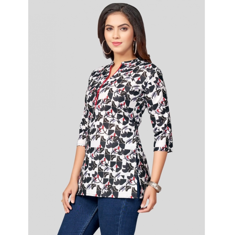 Generic Women’s Cotton Blend Mandarin Collar 3/4 Sleeves Short Top (Black-White)