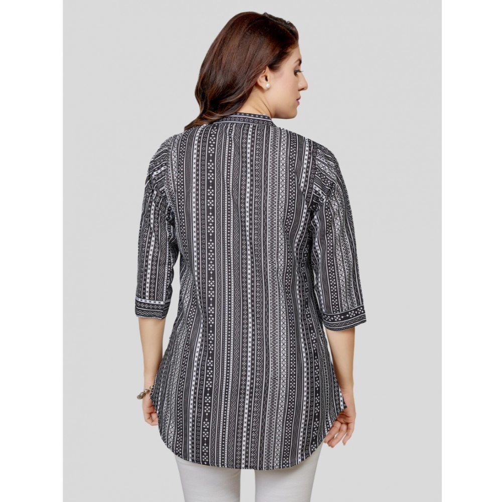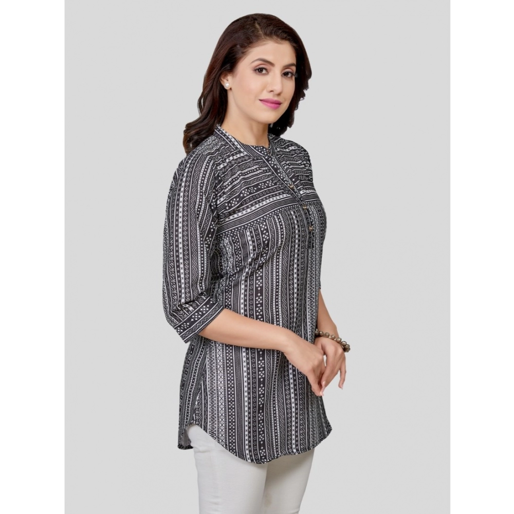 Generic Women’s Cotton Blend Mandarin Collar 3/4 Sleeves Short Top (Black)