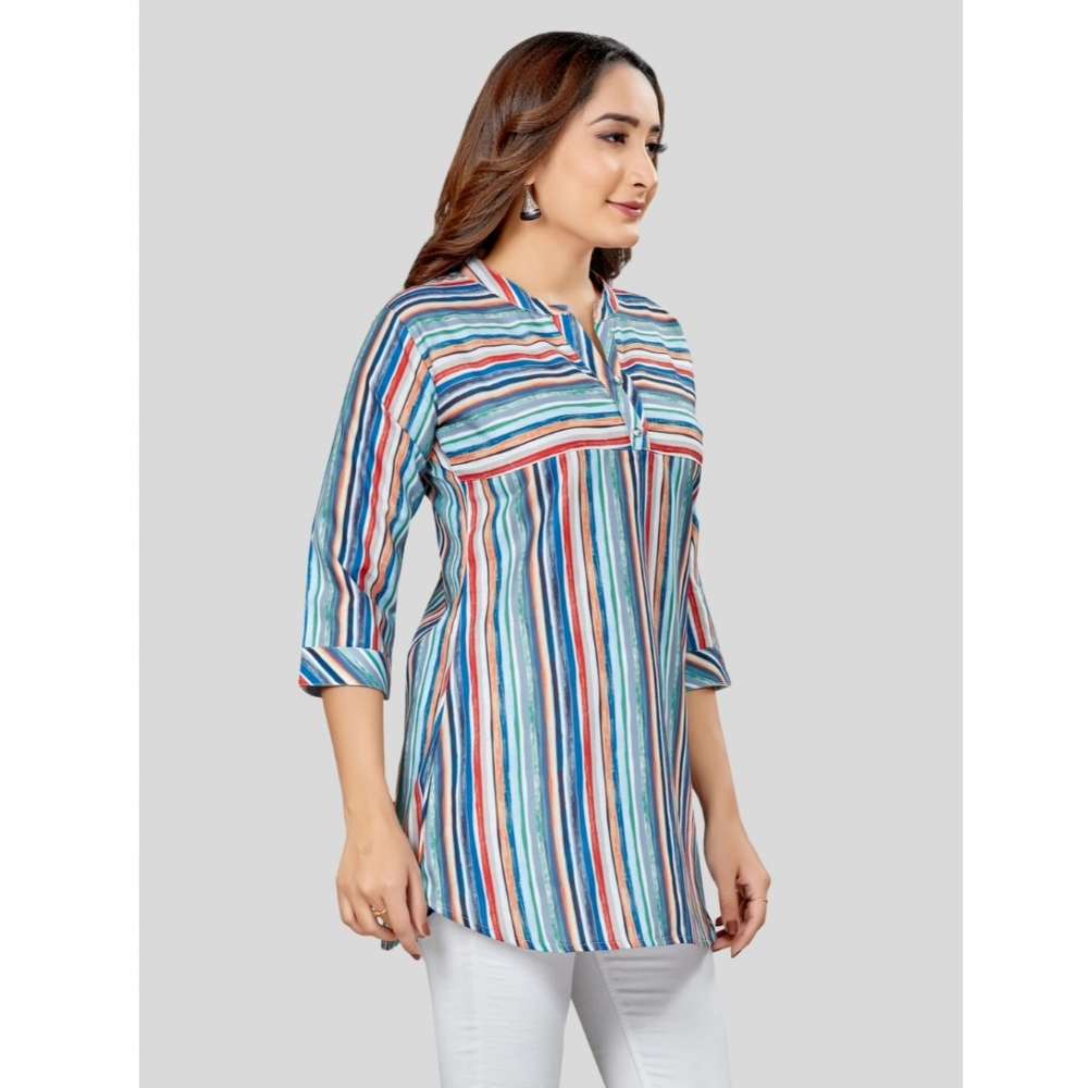 Generic Women’s Cotton Blend Mandarin Collar 3/4 Sleeves Short Top (Multicolor)