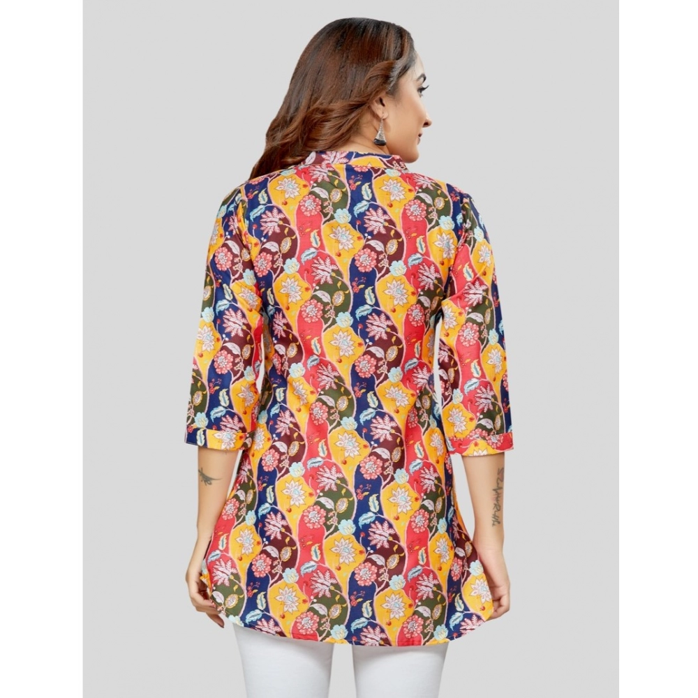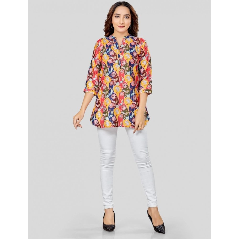 Generic Women’s Cotton Blend Mandarin Collar 3/4 Sleeves Short Top (Multicolor)