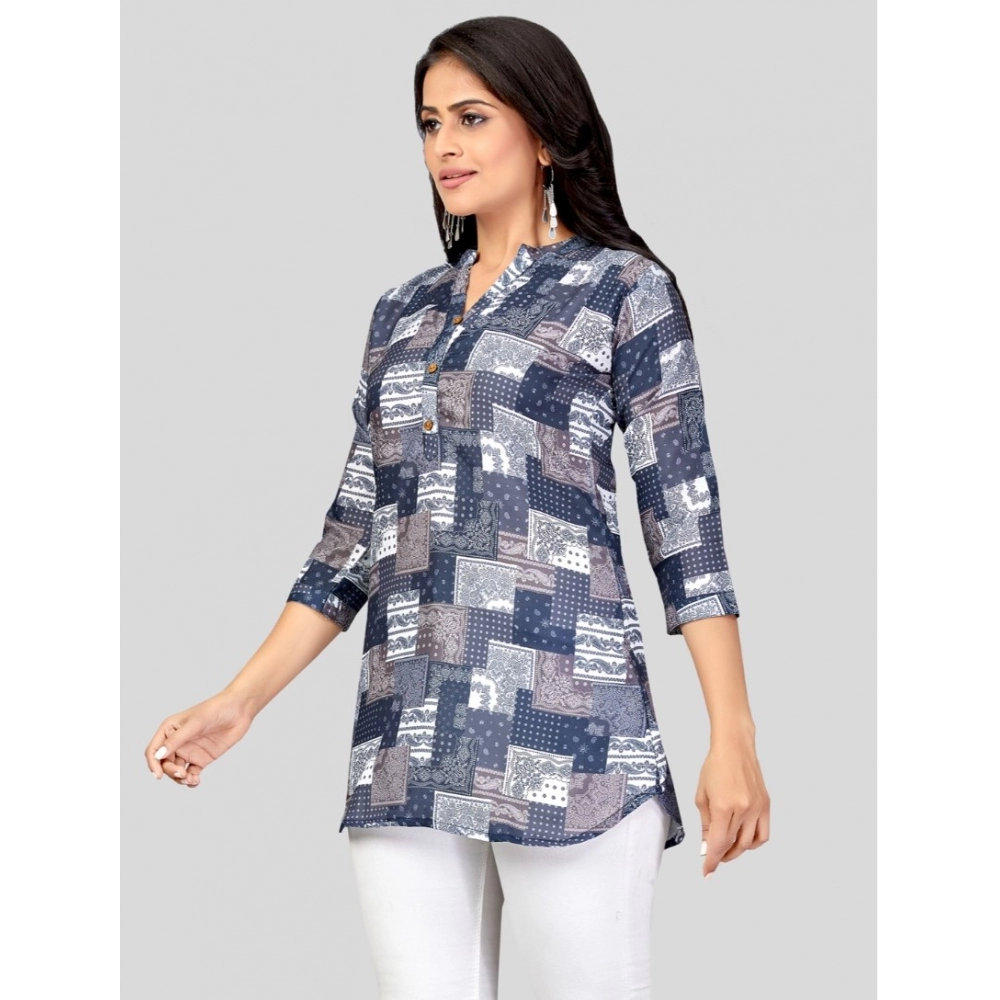 Generic Women’s Cotton Blend Mandarin Collar 3/4 Sleeves Short Top (NavyBlue)