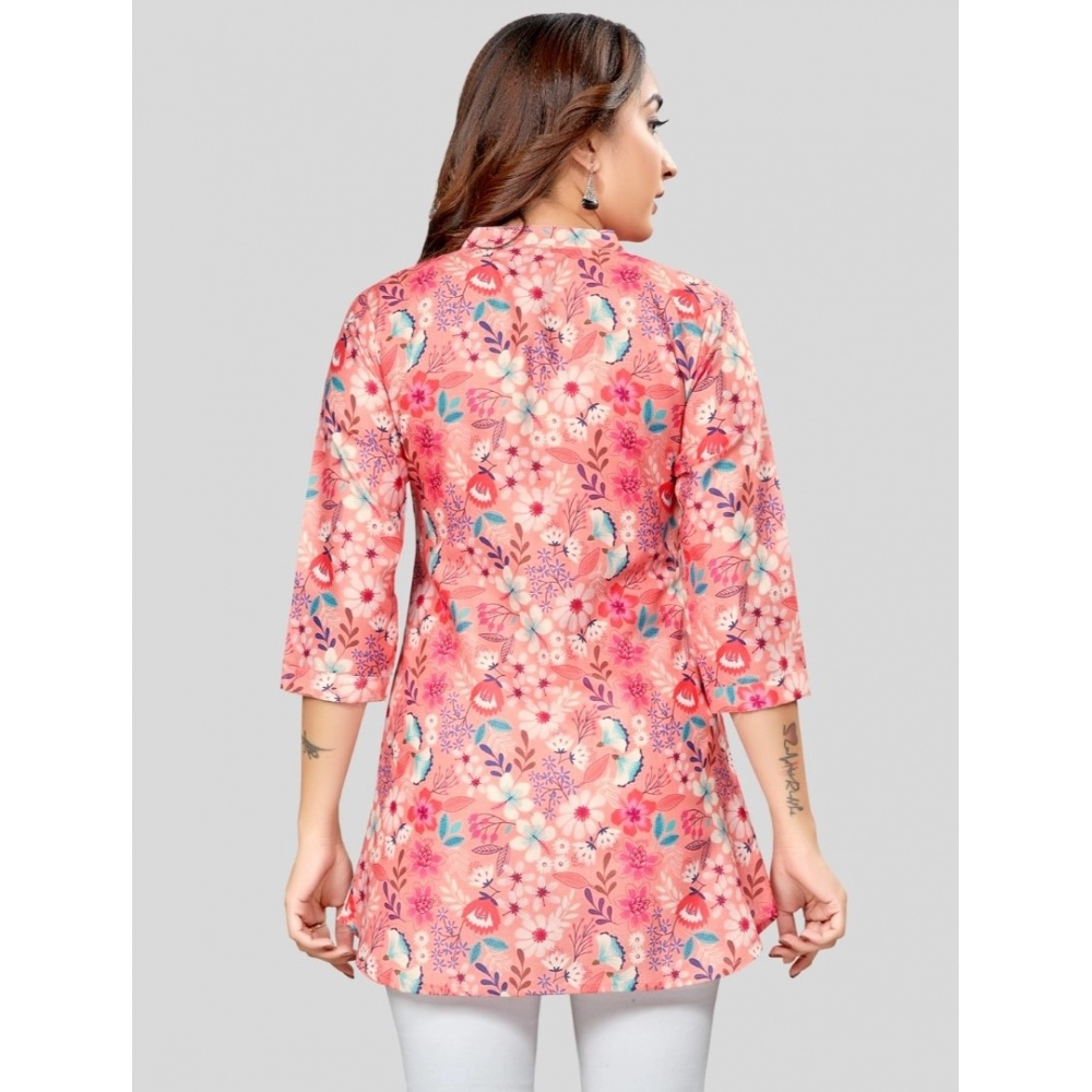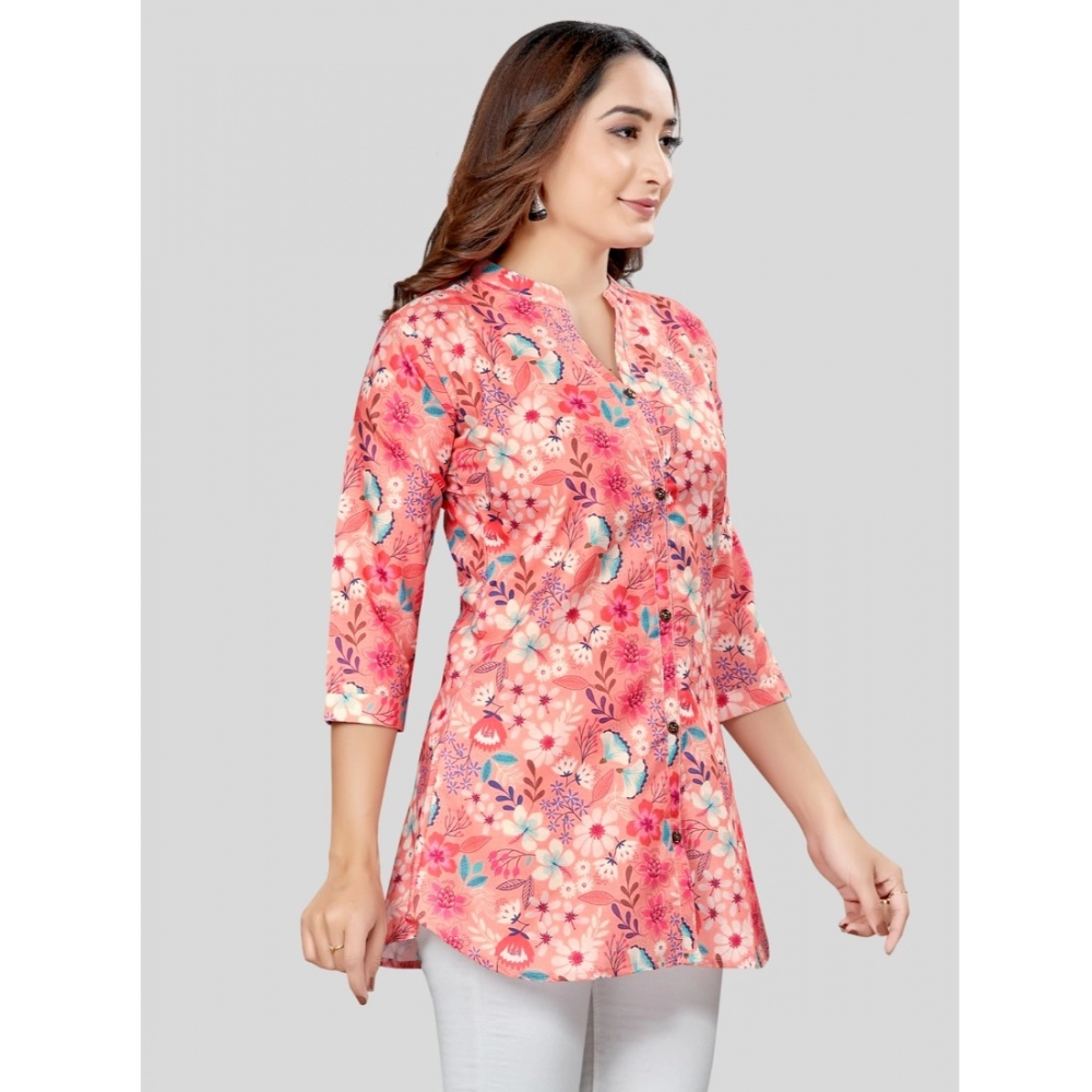 Generic Women’s Cotton Blend Mandarin Collar 3/4 Sleeves Short Top (Pink)