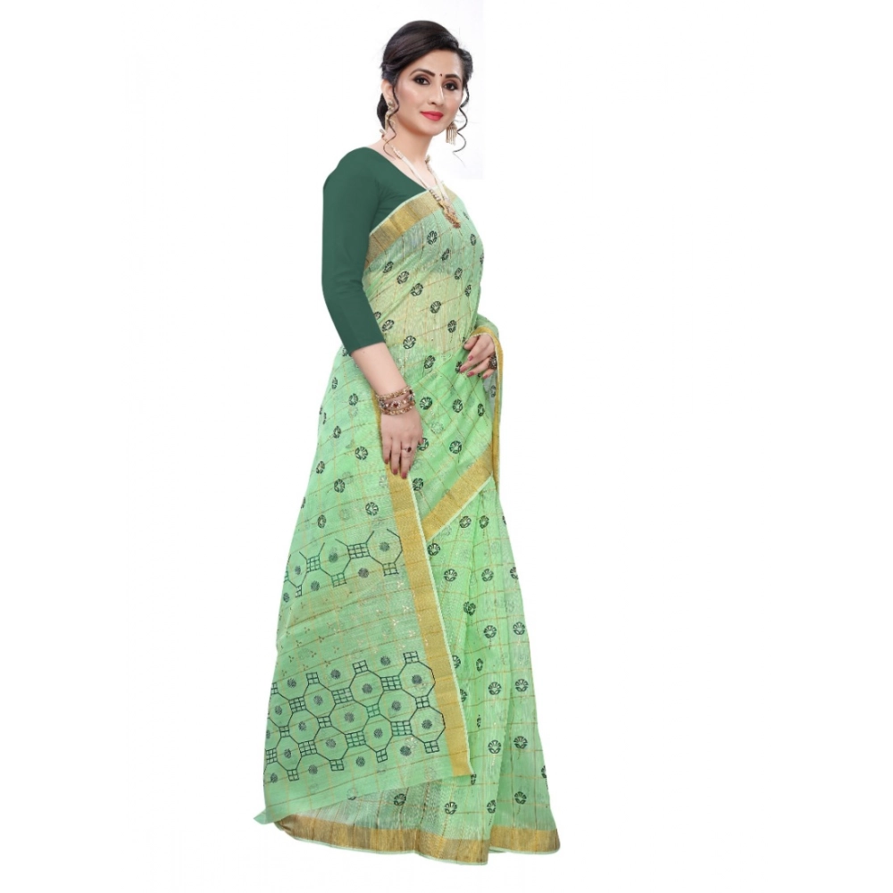 Women’s Cotton Blend Saree(Parrot Green ,5-6Mtrs)