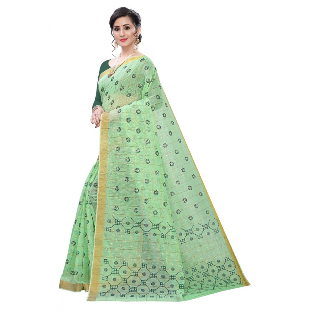 Generic Women’s Cotton Blend Saree(Parrot Green ,5-6Mtrs)