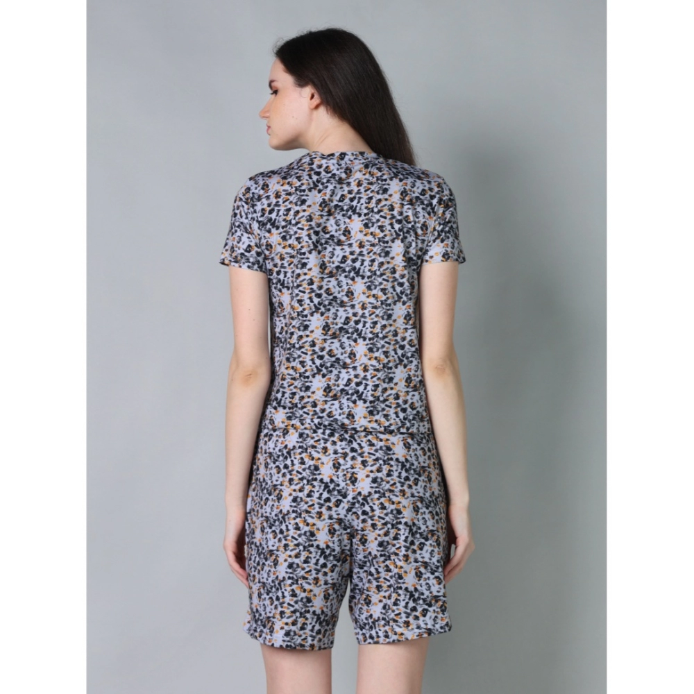 Generic Women’s Cotton Blended Printed Round Neck Half Sleeve Top – Shorts Set (Multicolor)