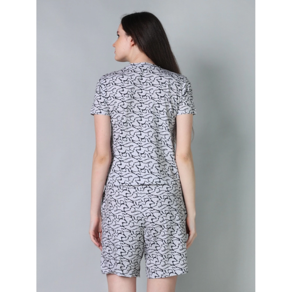 Generic Women’s Cotton Blended Printed Round Neck Half Sleeve Top – Shorts Set (Off_White)
