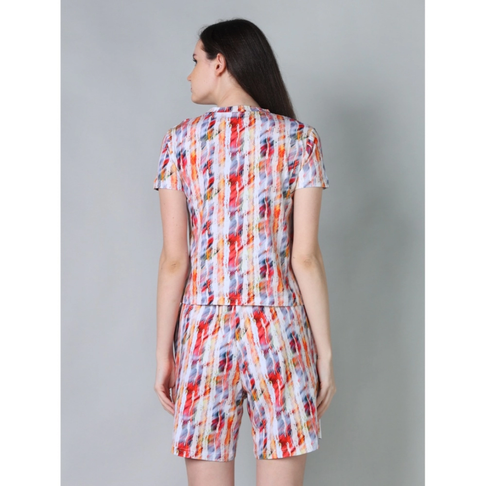 Generic Women’s Cotton Blended Printed Round Neck Half Sleeve Top – Shorts Set (Red)