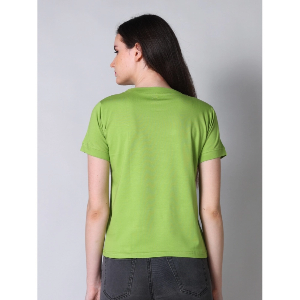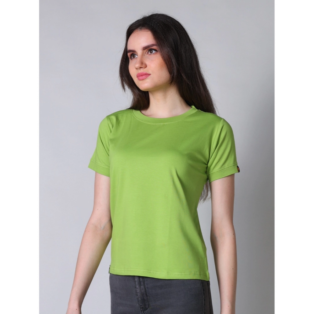 Generic Women’s Cotton Blended Solid Round Neck Half Sleeve T-Shirt (Green)