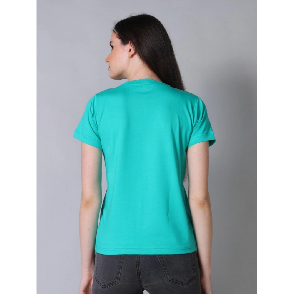 Generic Women’s Cotton Blended Solid Round Neck Half Sleeve T-Shirt (Green)