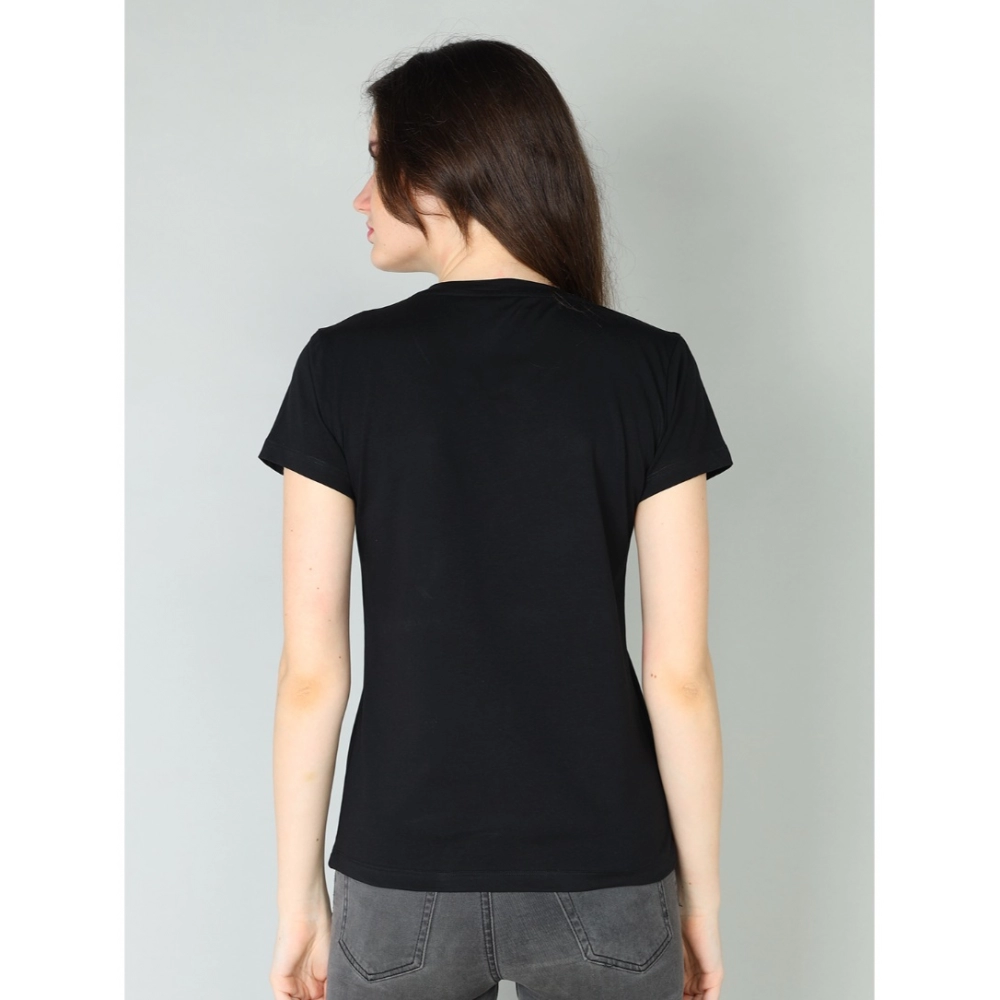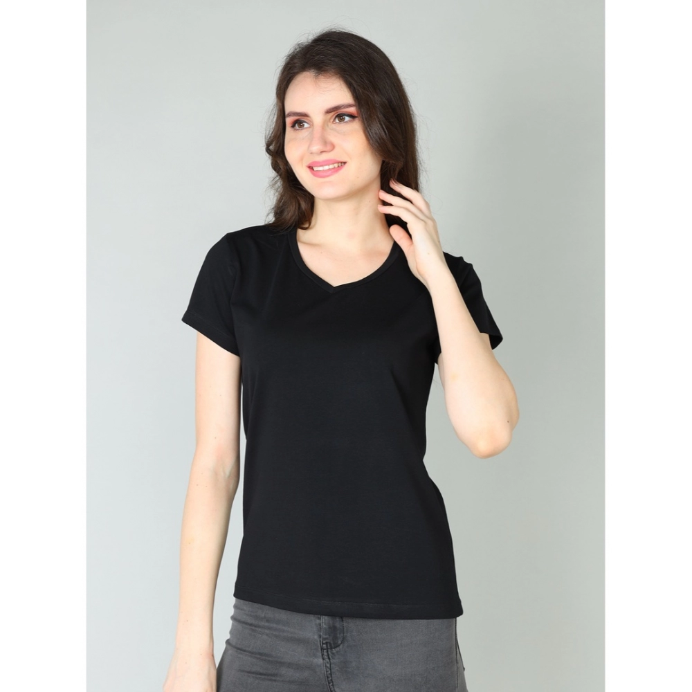 Generic Women’s Cotton Blended Solid Sweetheart Half Sleeve T-Shirt (Black)
