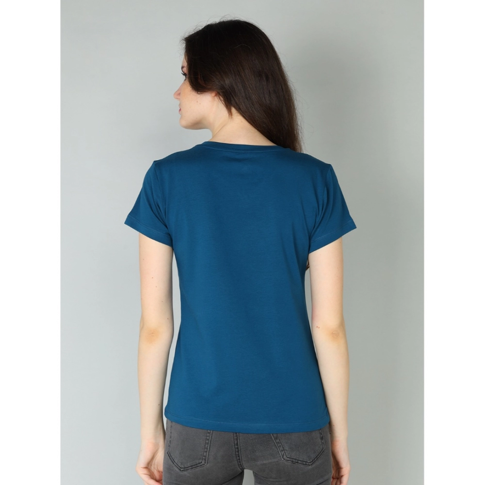 Generic Women’s Cotton Blended Solid Sweetheart Half Sleeve T-Shirt (Blue)