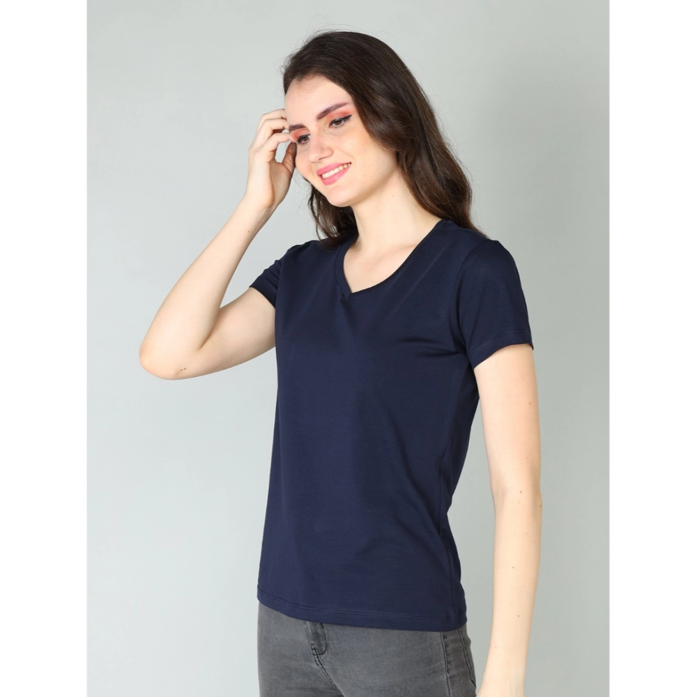 Generic Women’s Cotton Blended Solid Sweetheart Half Sleeve T-Shirt (Navy)